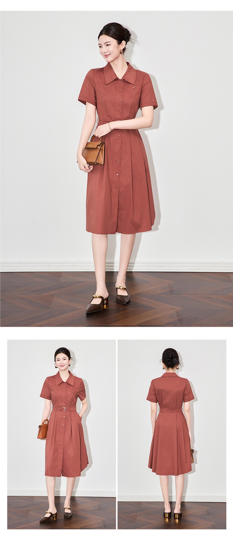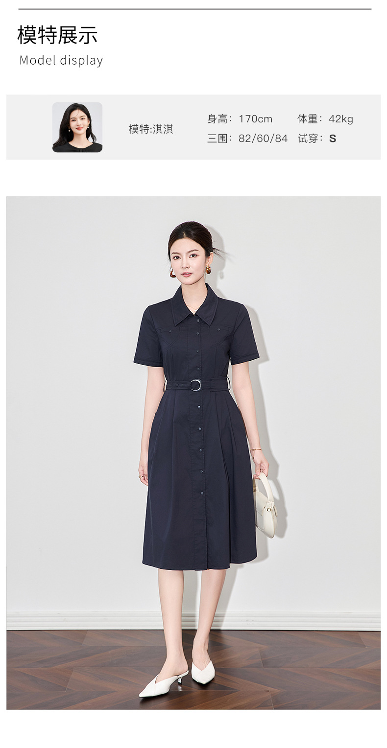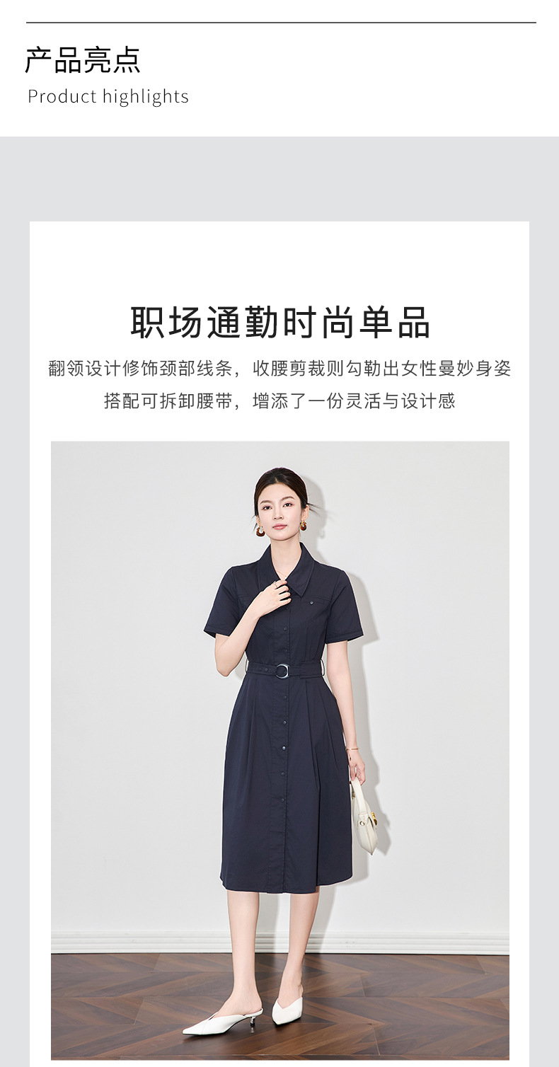 「高货wl」全新升级【铂金会员358/天猫479/差价121】(10510)洛诗琳优雅气质翻领连衣裙2025夏季通勤高显瘦衬衫裙女