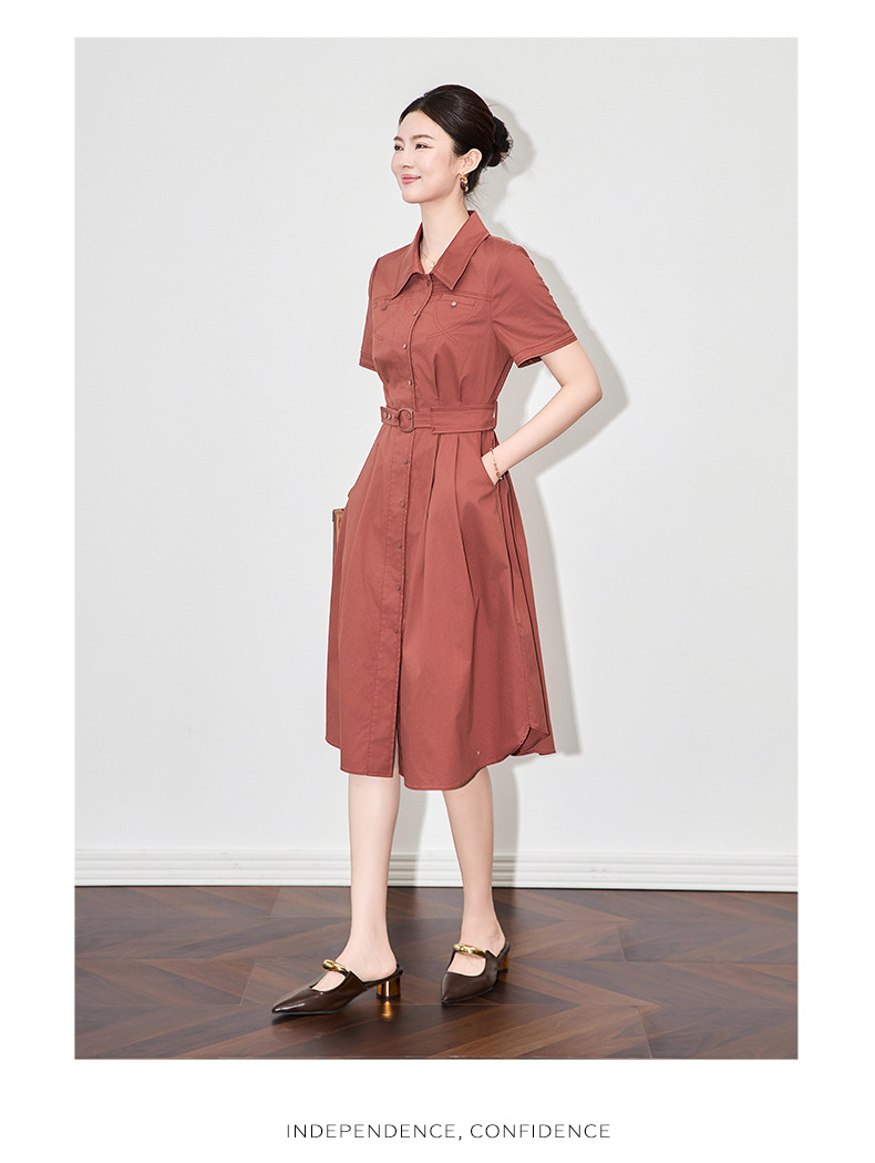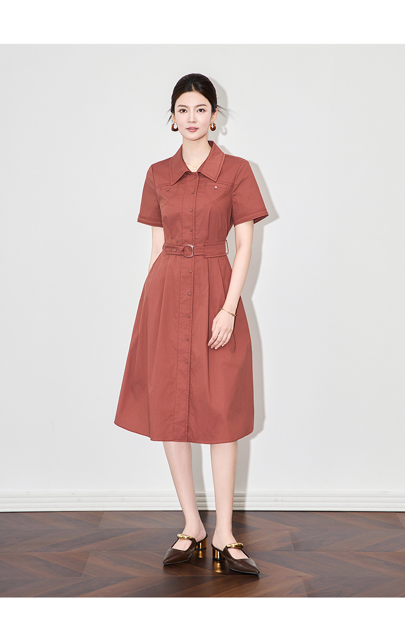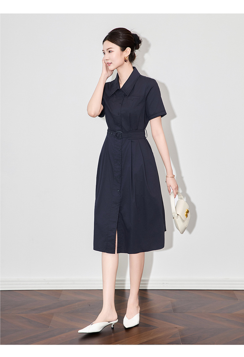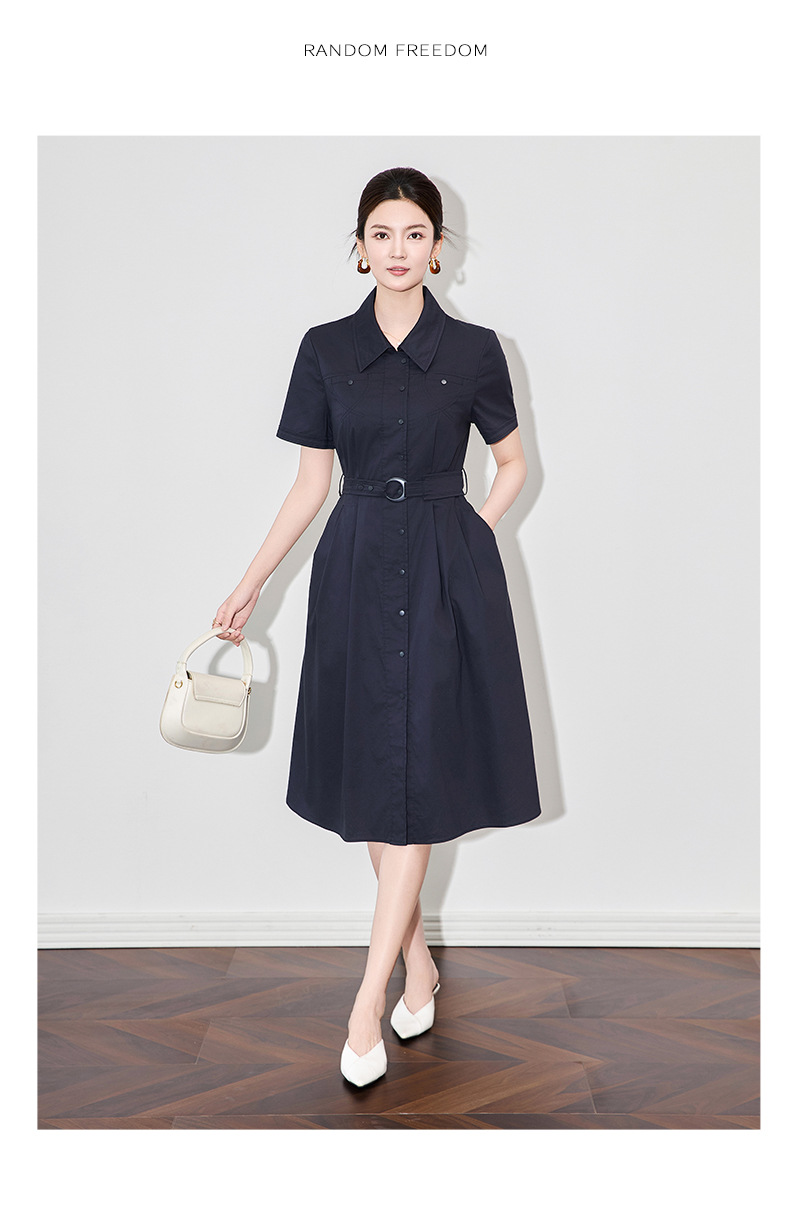 「高货wl」全新升级【铂金会员358/天猫479/差价121】(10510)洛诗琳优雅气质翻领连衣裙2025夏季通勤高显瘦衬衫裙女