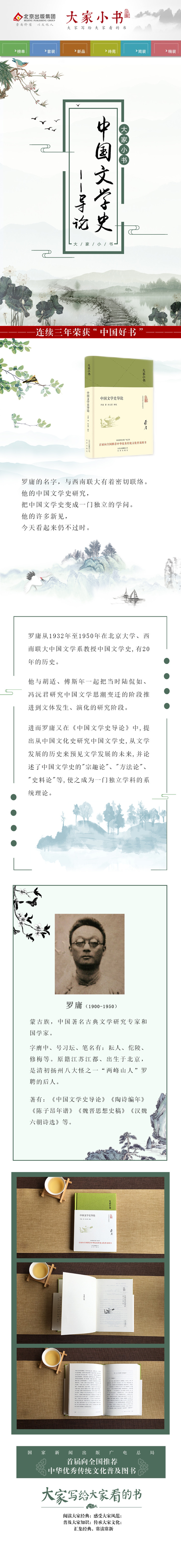 罗庸从1932年至1950年在北京大学、西南联大中国文学系教授中国文学史,有20年的历史。他与胡适、傅斯年一起把当时陆侃如、冯沅君研究中国文学思潮变迁的阶段推进到文体发生、演化的研究阶段。进而罗庸又在《中国文学史导论》中,提出从中国文化史研究中国文学史,从文学发展的历史来预见文学发展的未来,并论述了中国文学史的"宗趣论"、"方法论"、"史料论"等,使之成为一门独立学科的系统理论。