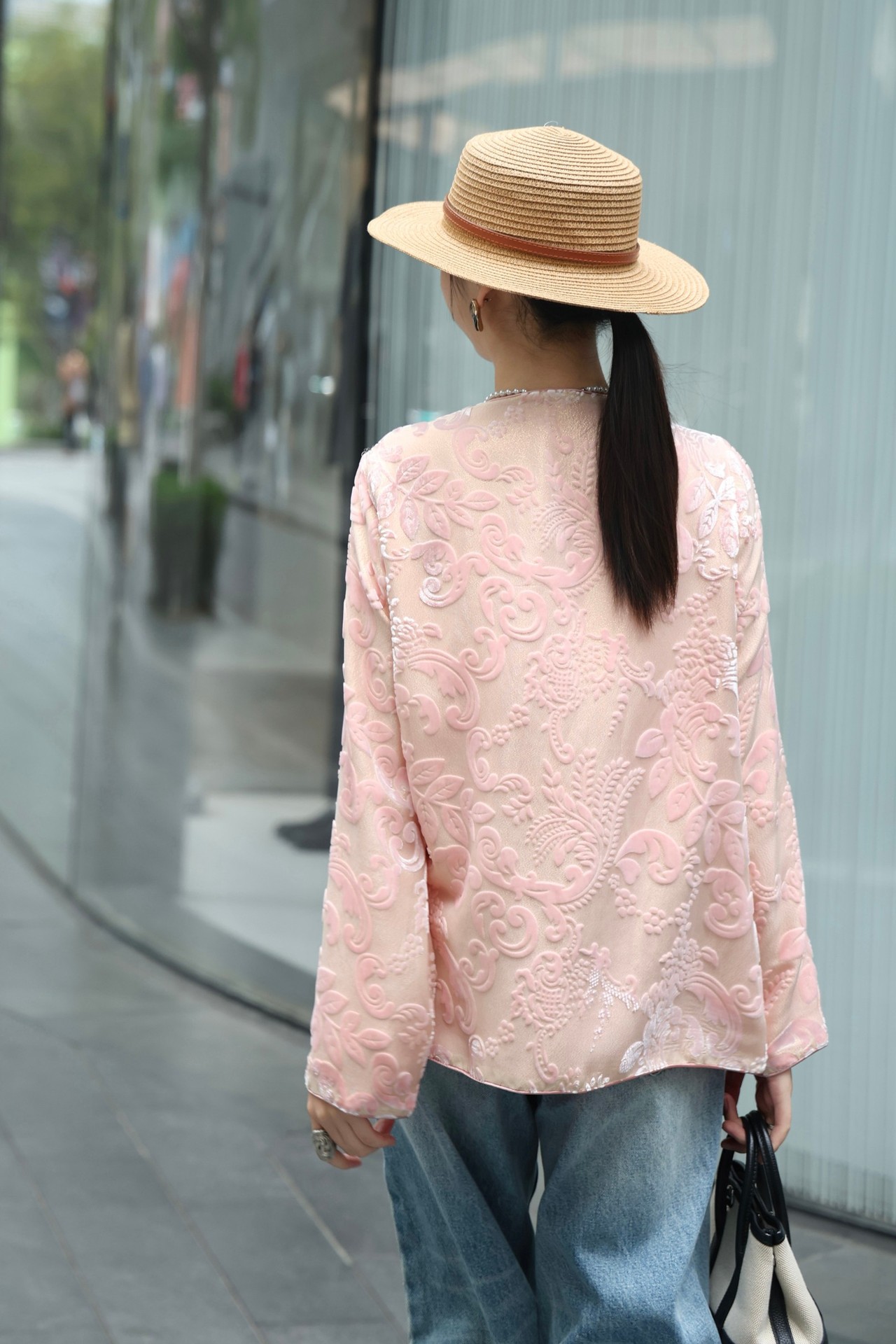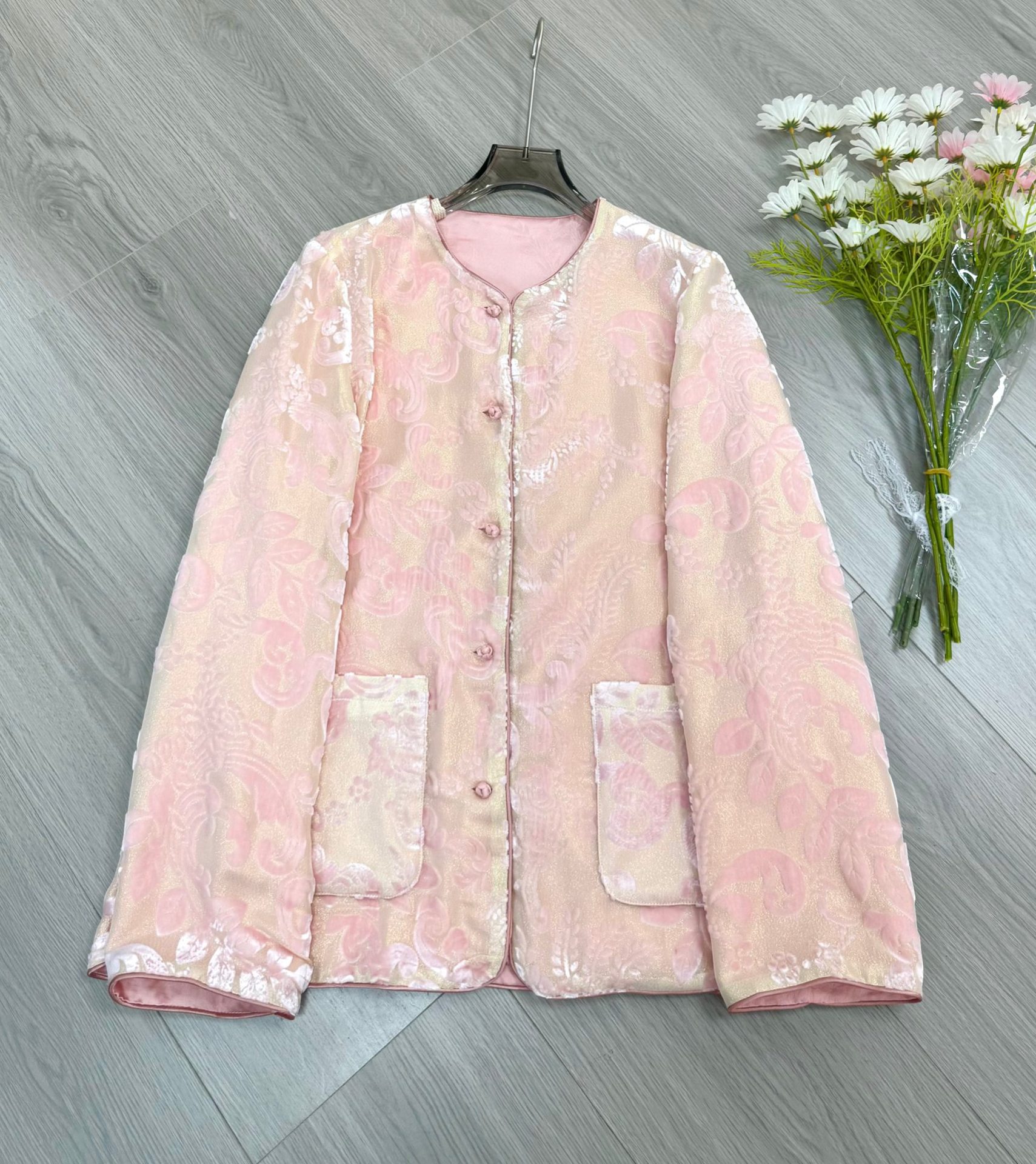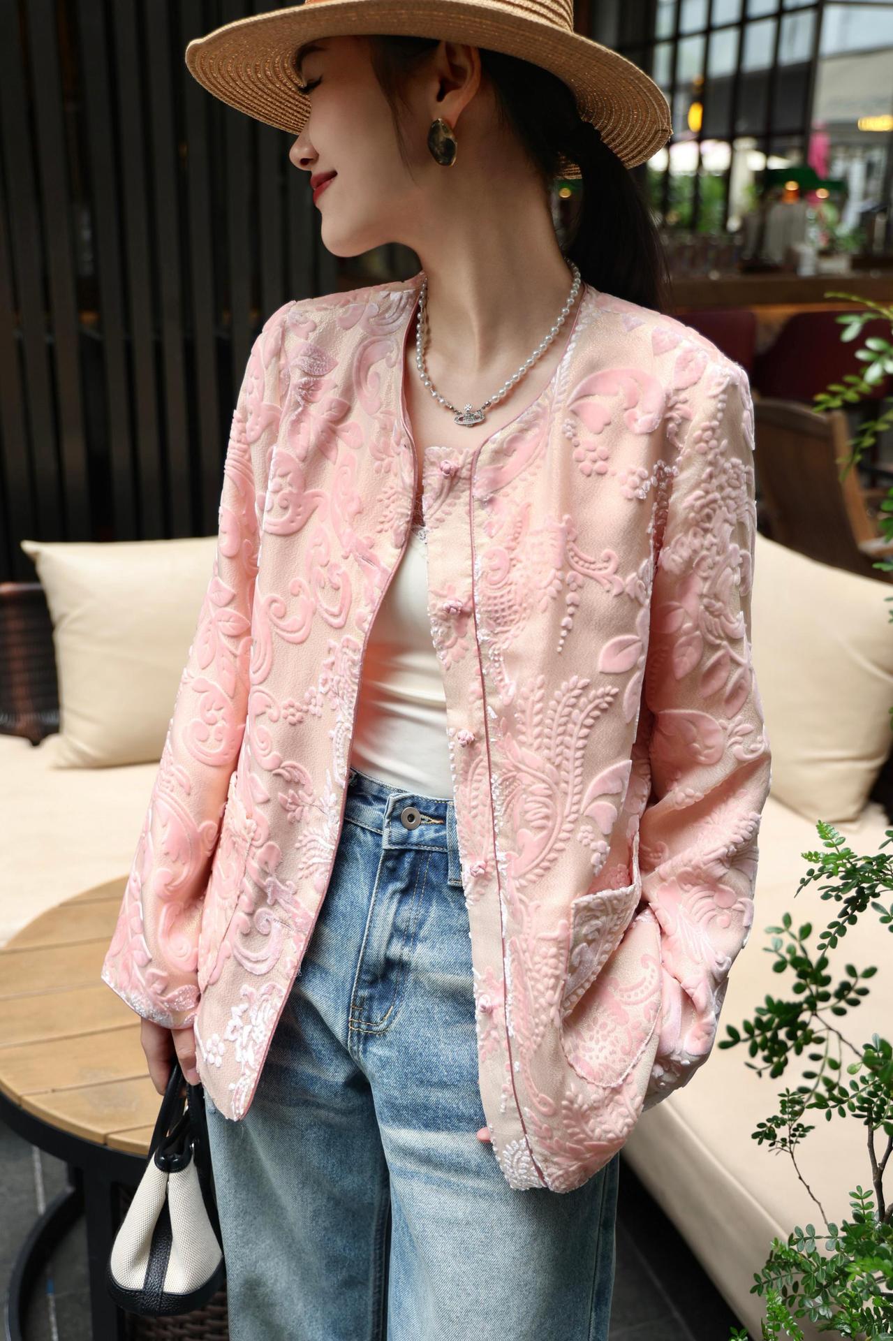 秋冬新中式双面穿时尚减龄真丝烧花外套