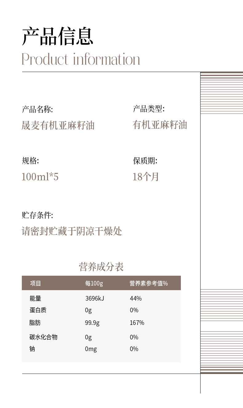 【OMEGA3营养油】有机亚麻籽油100ml*5瓶