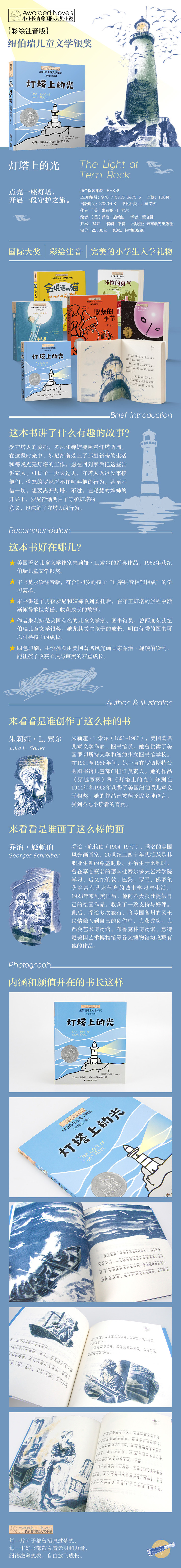 ★《灯塔上的光》是美国著名儿童文学作家朱莉娅•L.索尔的经典作品,于1952年荣获纽伯瑞儿童文学银奖。