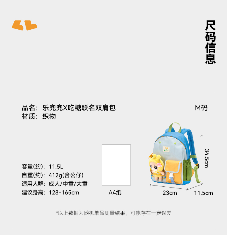 【新品包包】中国shukiku乐兜兜X吃糖联名双肩包-桃桃紫芋M书包儿童成人