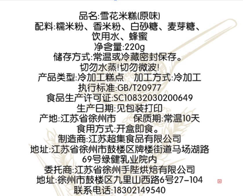 青麦雪花米糕手工现做清甜回甘麦香十足220g/盒