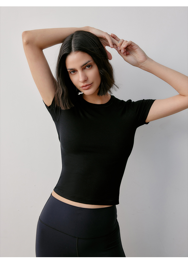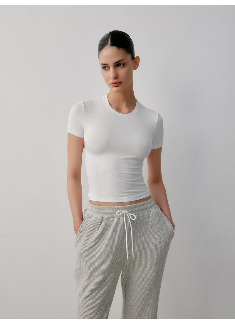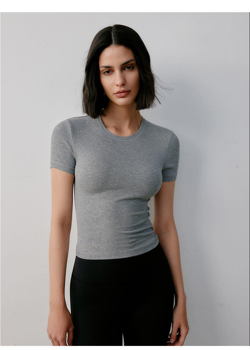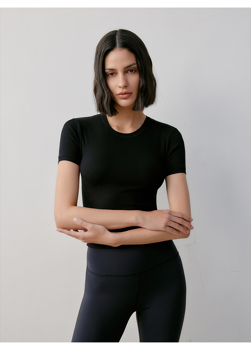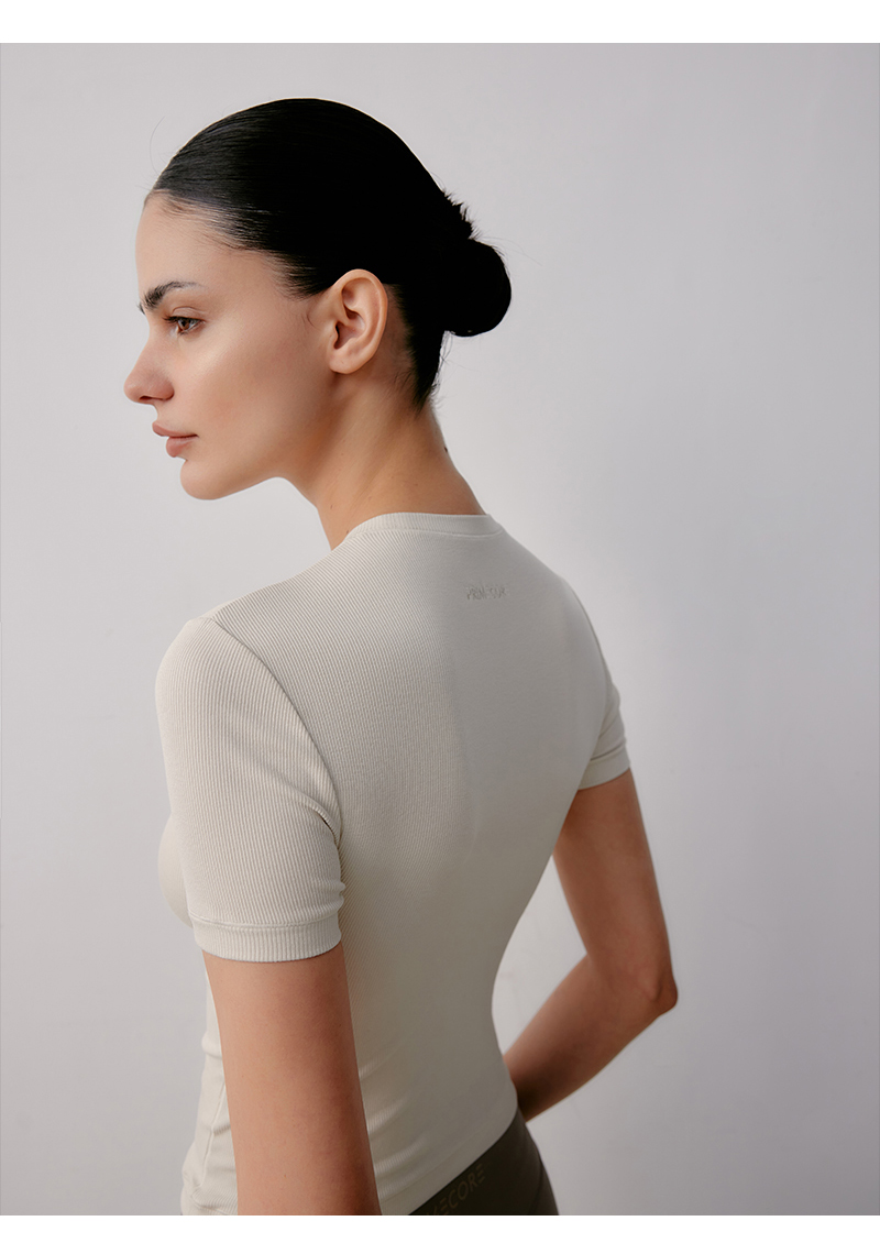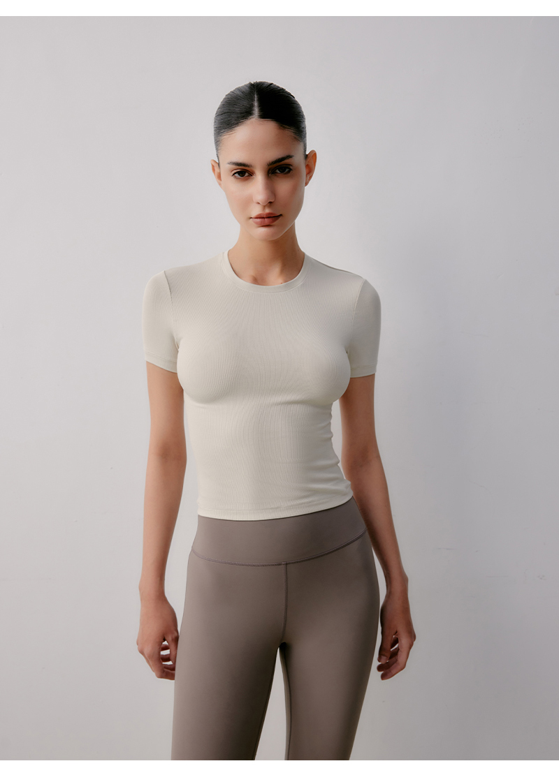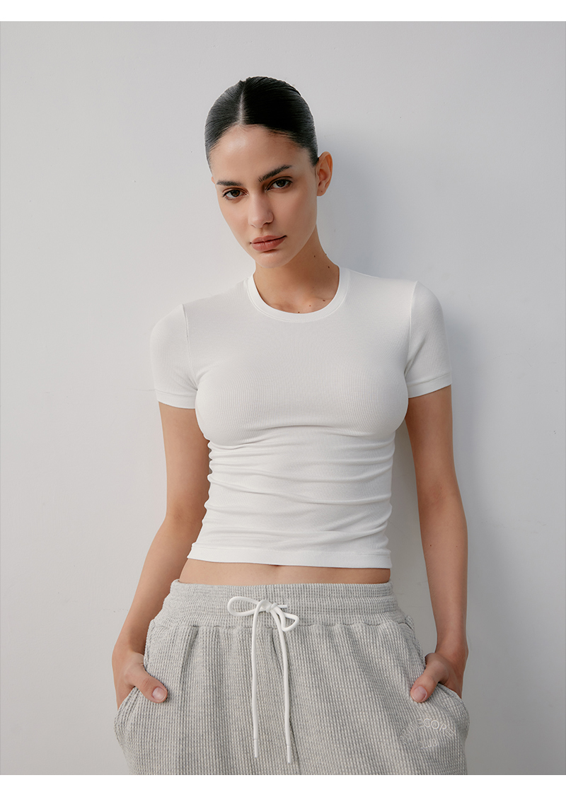 PRIMECORE 紧身t恤女式修身短袖螺纹t恤法式上衣紧身短袖修身打底