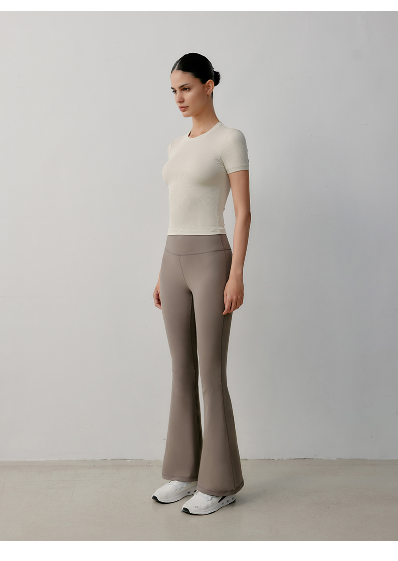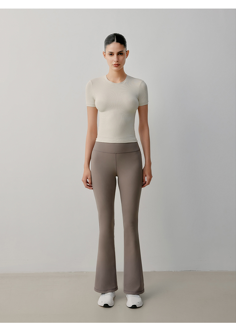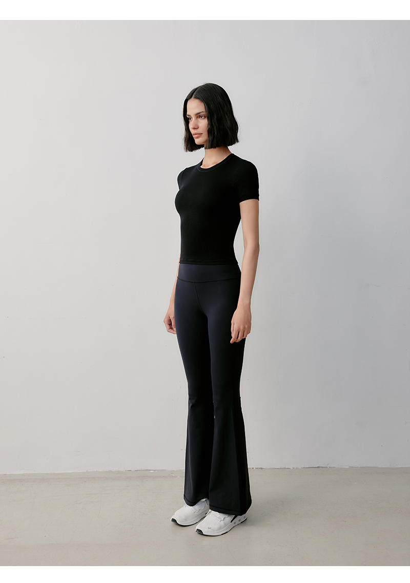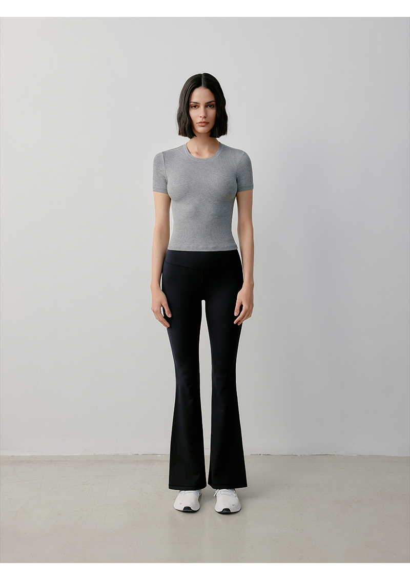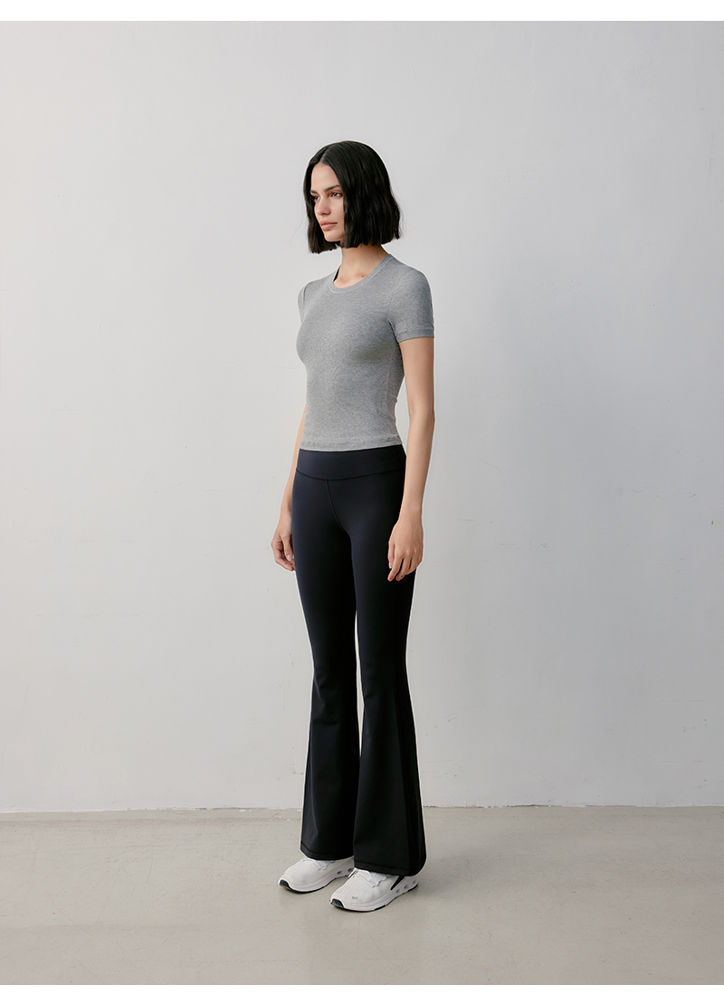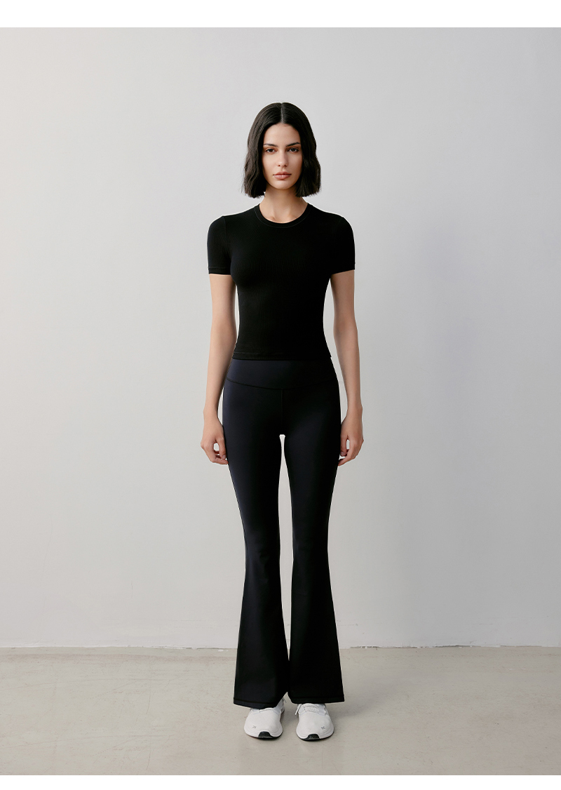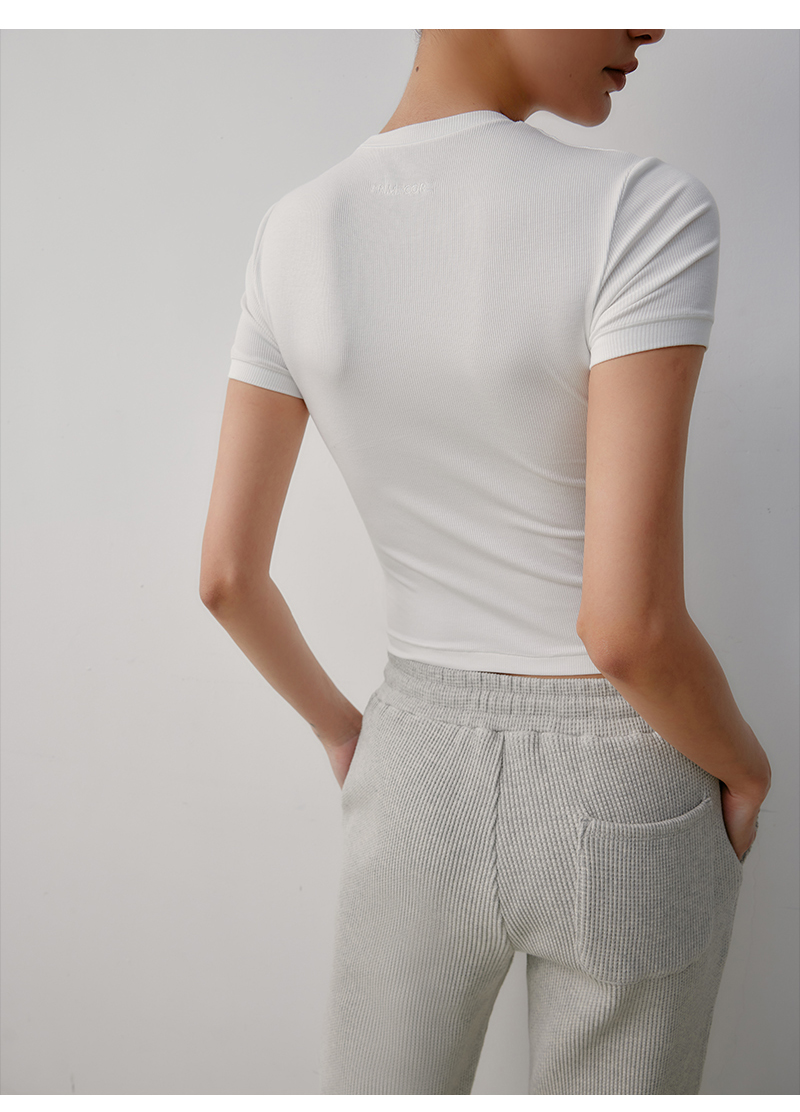 PRIMECORE 紧身t恤女式修身短袖螺纹t恤法式上衣紧身短袖修身打底