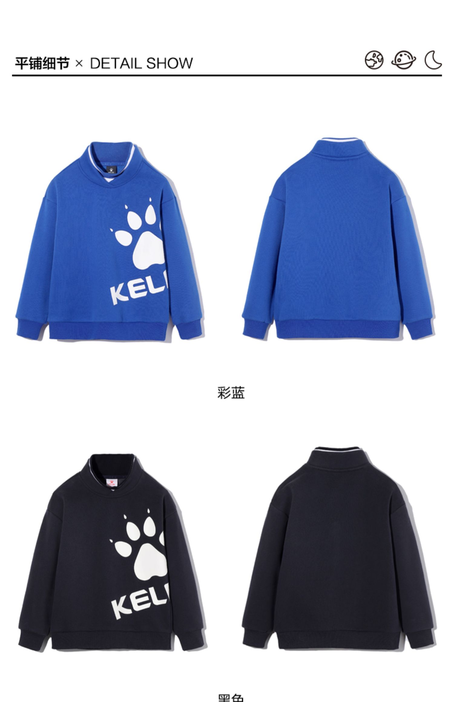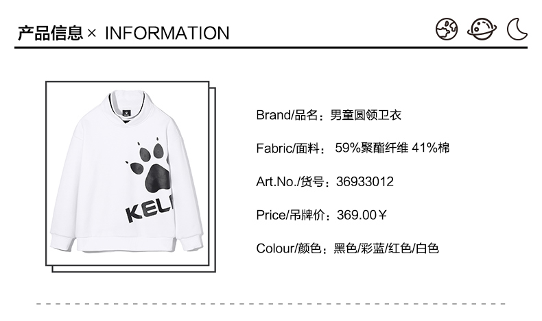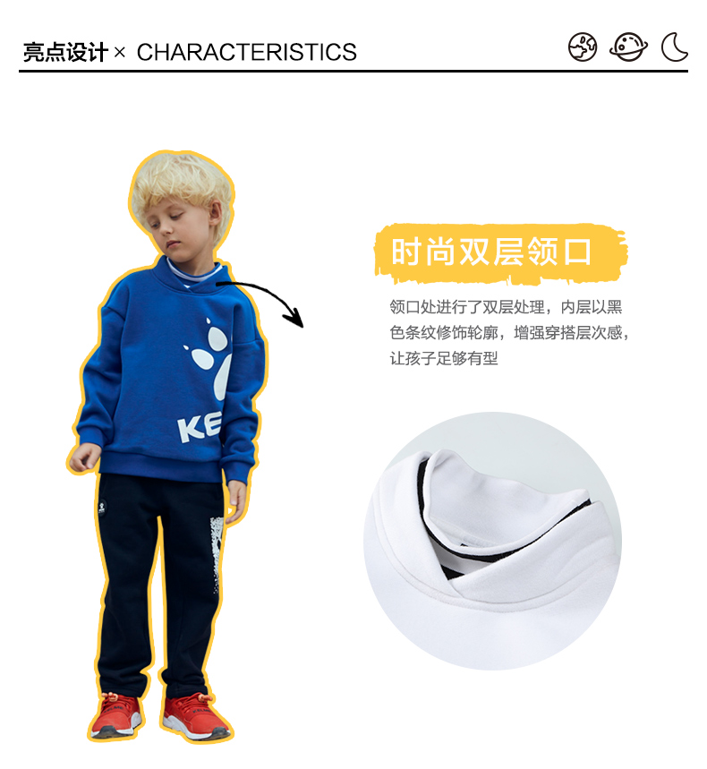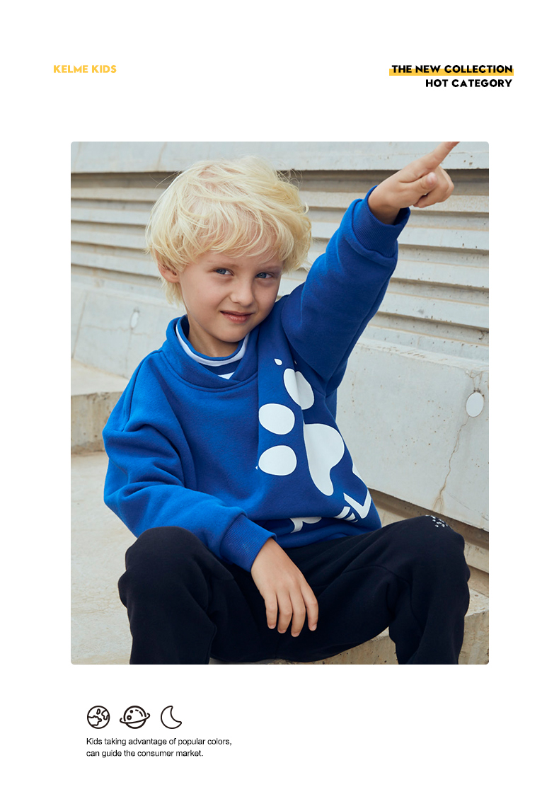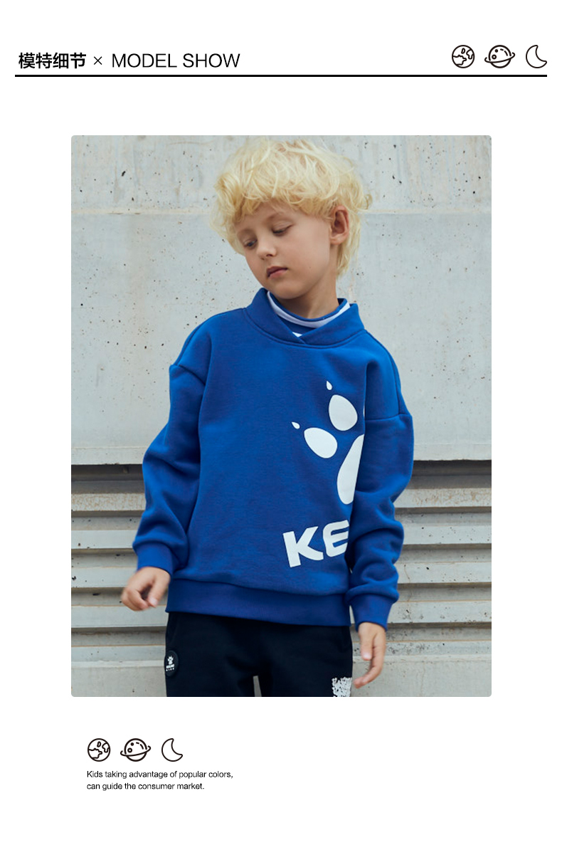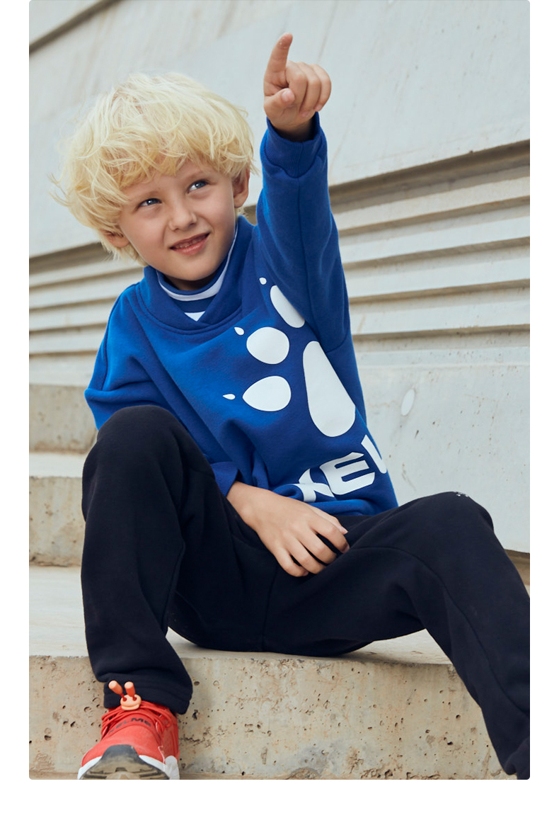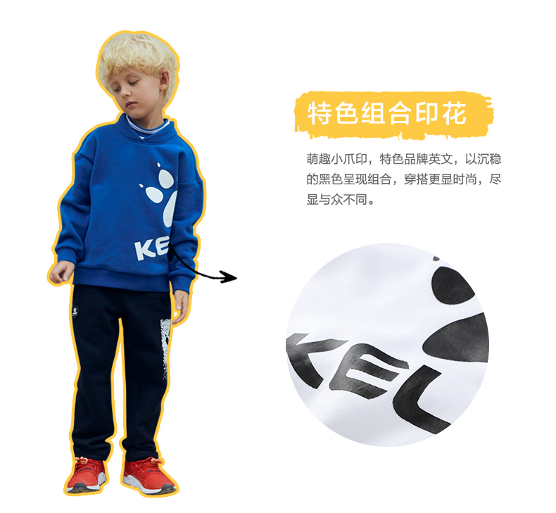 kelme(kids)童装新款男童前胸印花圆领卫衣潮童套头上衣