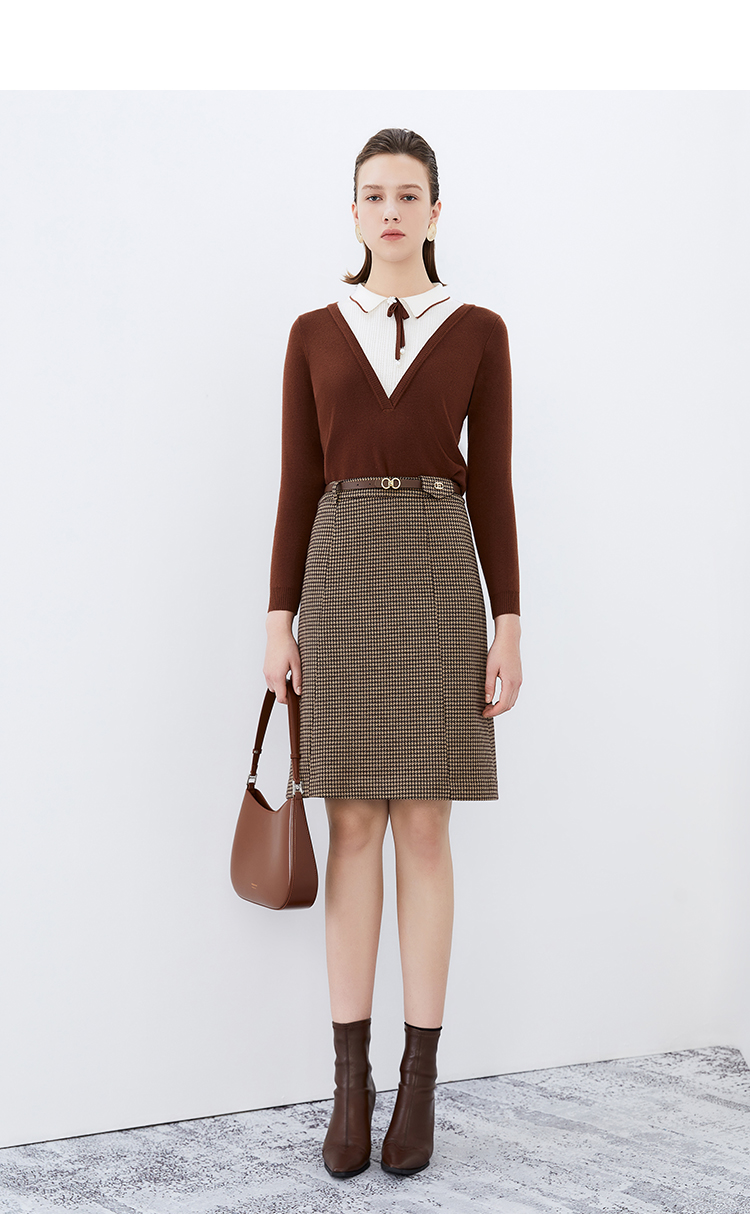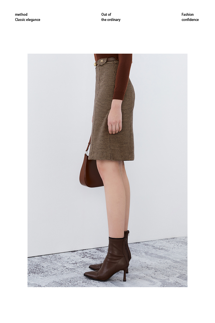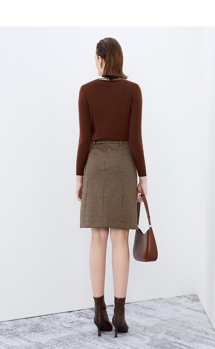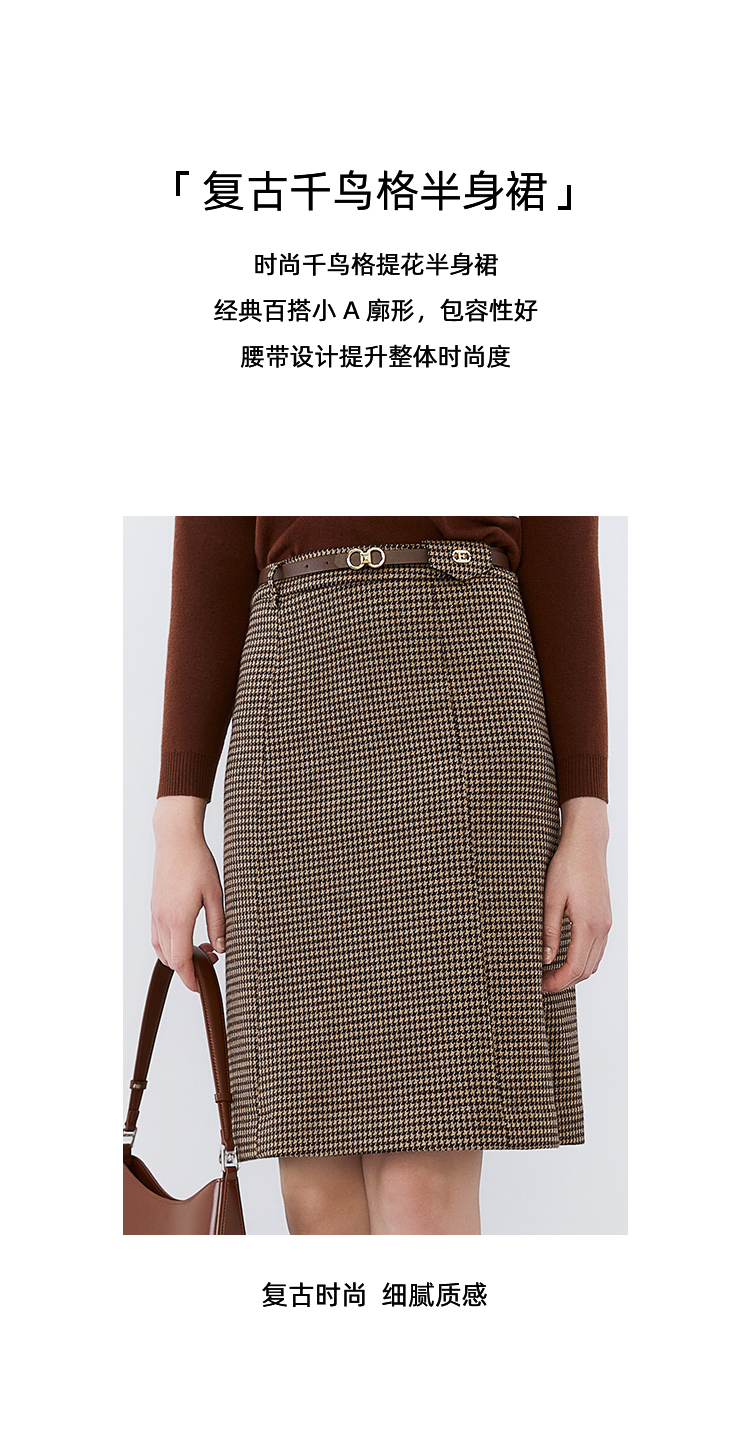 EITIE爱特爱冬季新款洋气时髦格纹高腰包臀半身裙女裙7606306