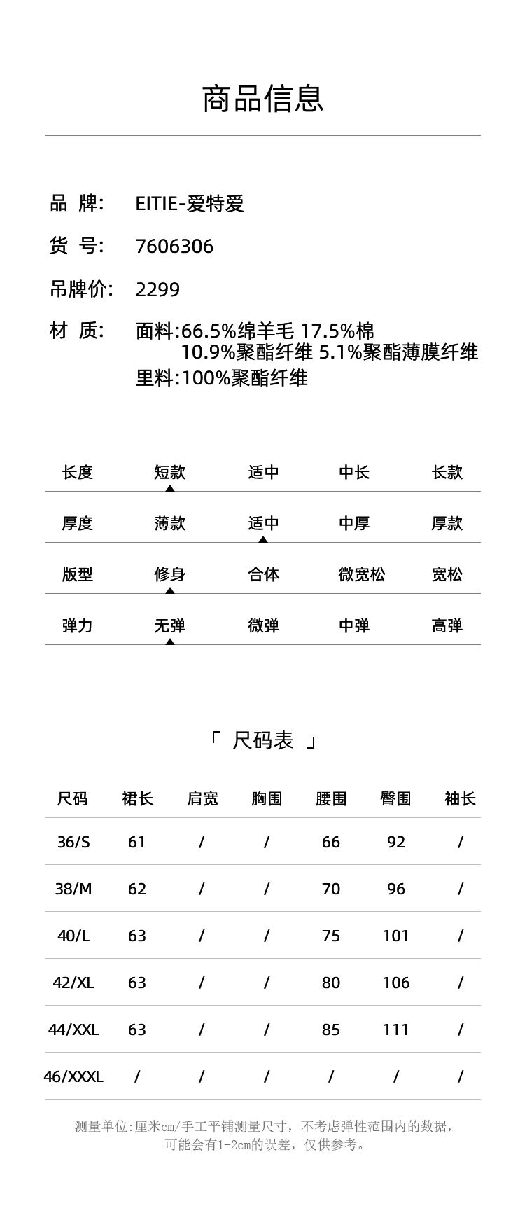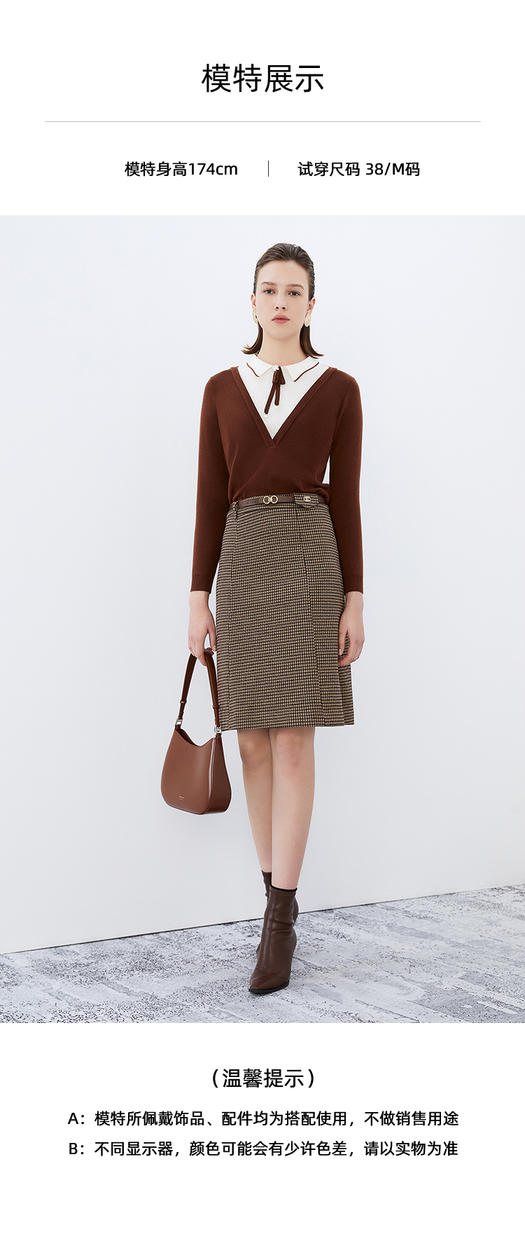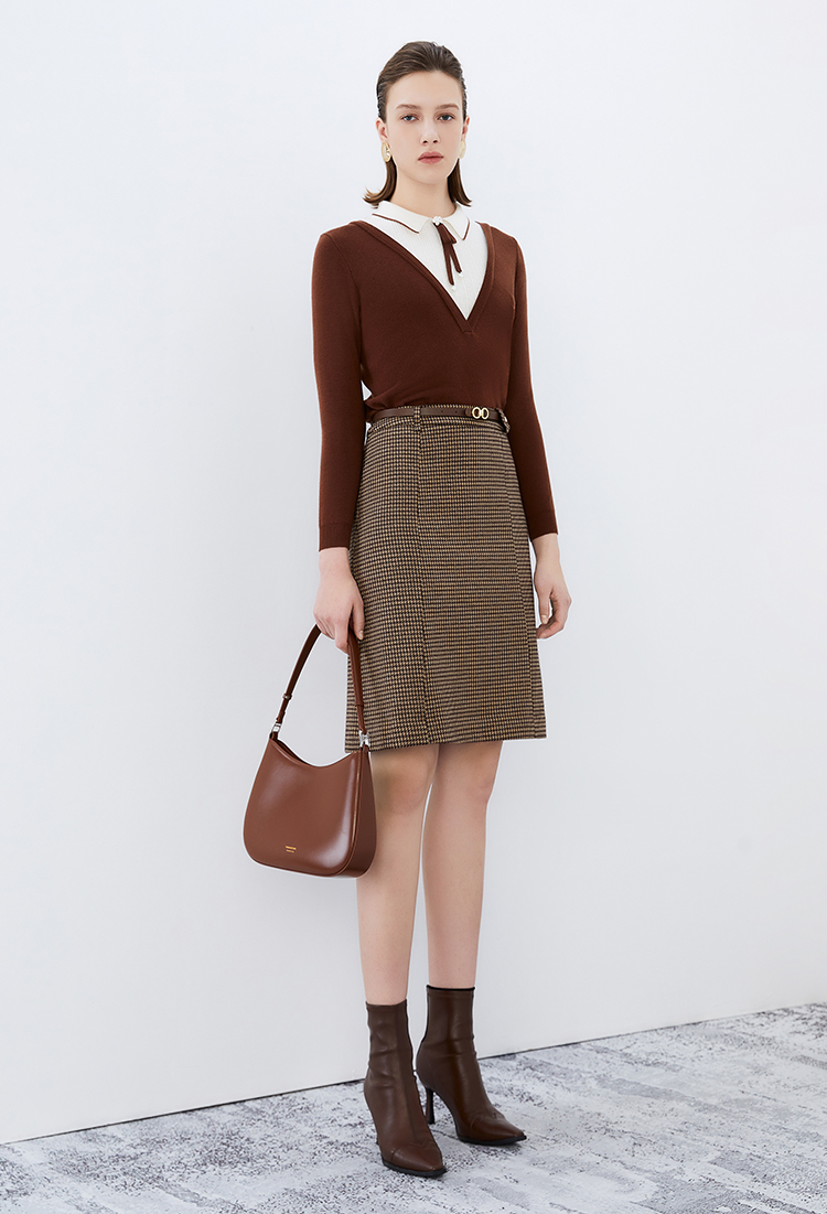 EITIE爱特爱冬季新款洋气时髦格纹高腰包臀半身裙女裙7606306