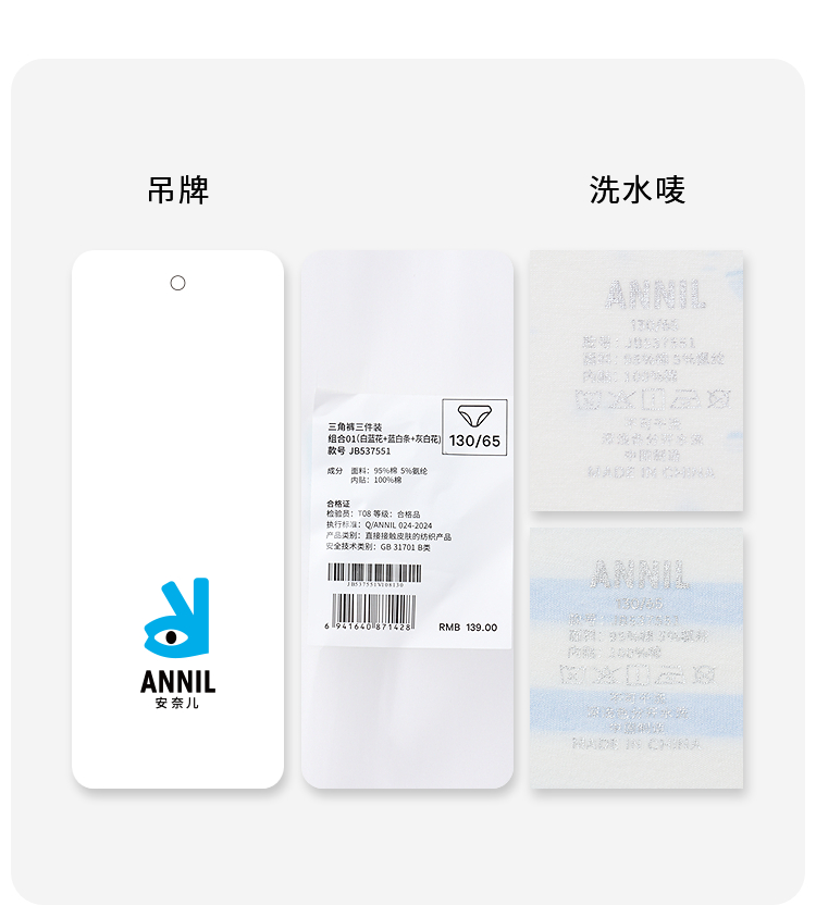 男童三角裤三件装秋季新款安奈儿童装JB537551