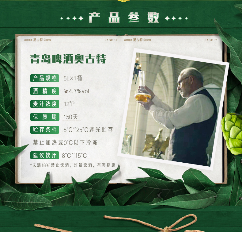 青岛啤酒奥古特12度5L*1金樽一代提盒桶啤 商品图2