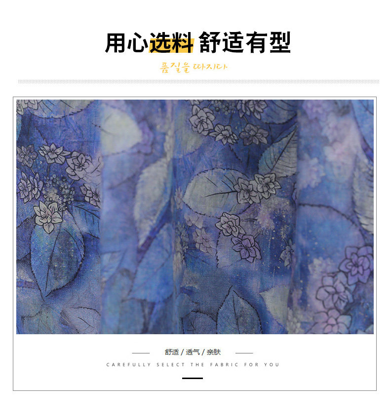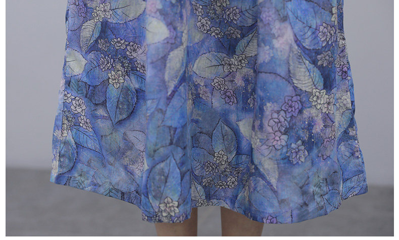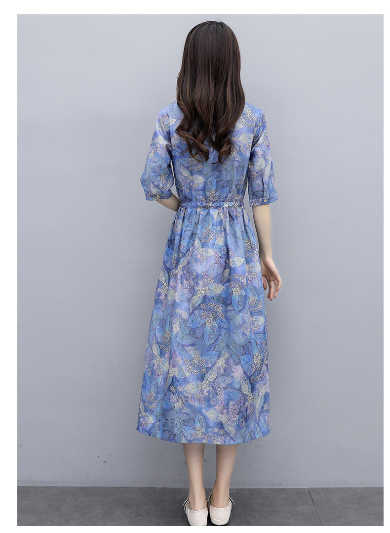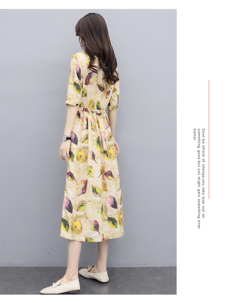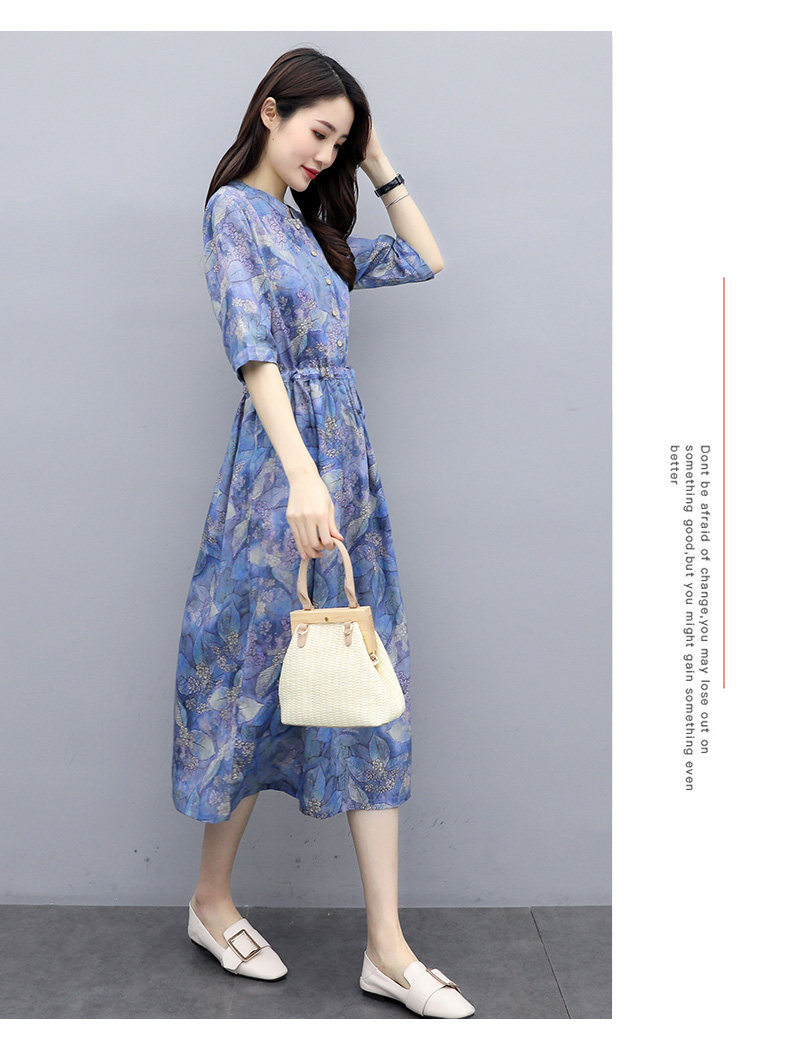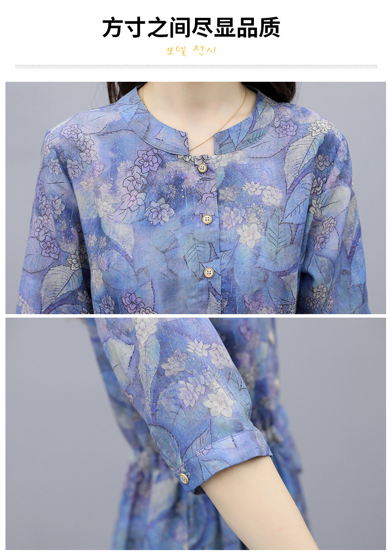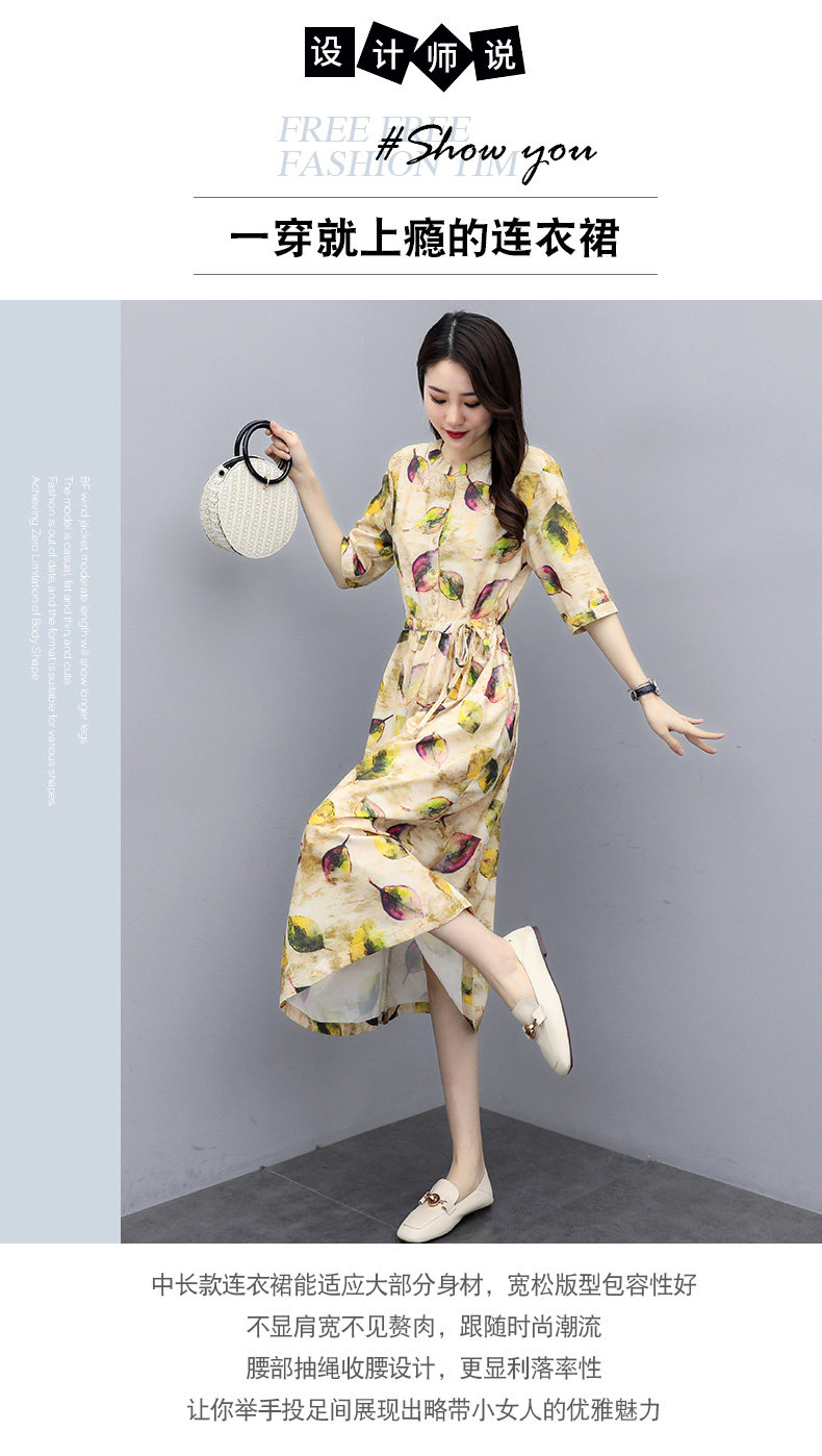NRJ-8011春装新款收腰休闲气质中长款印花棉麻连衣裙