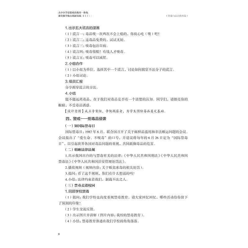 书名:大中小学思想政治教育一体化课堂教学地方创新实践(禁毒与法治教育篇)