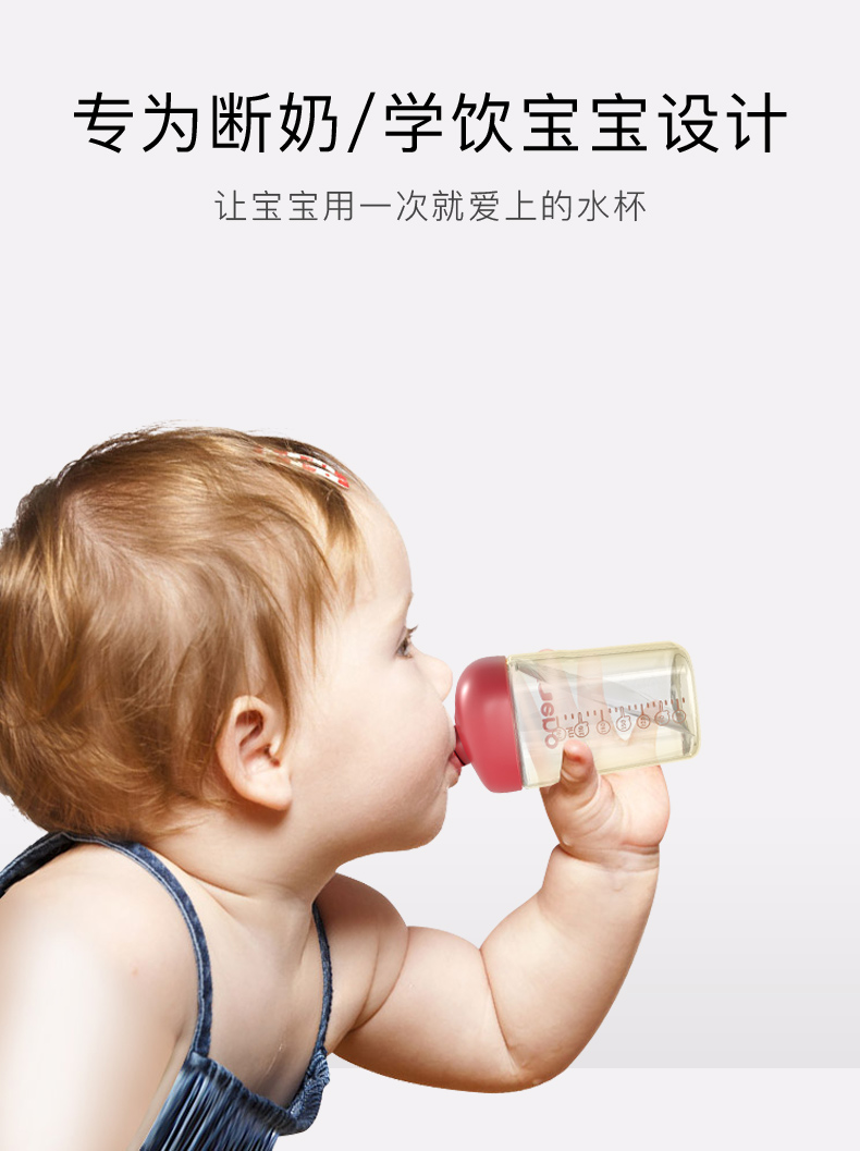 【开丽社群专属】儿童水杯ppsu宝宝直饮杯带刻度牛奶杯喝水杯防摔贝雷帽水杯【合作品牌恩尼诺,不参与商城满赠】