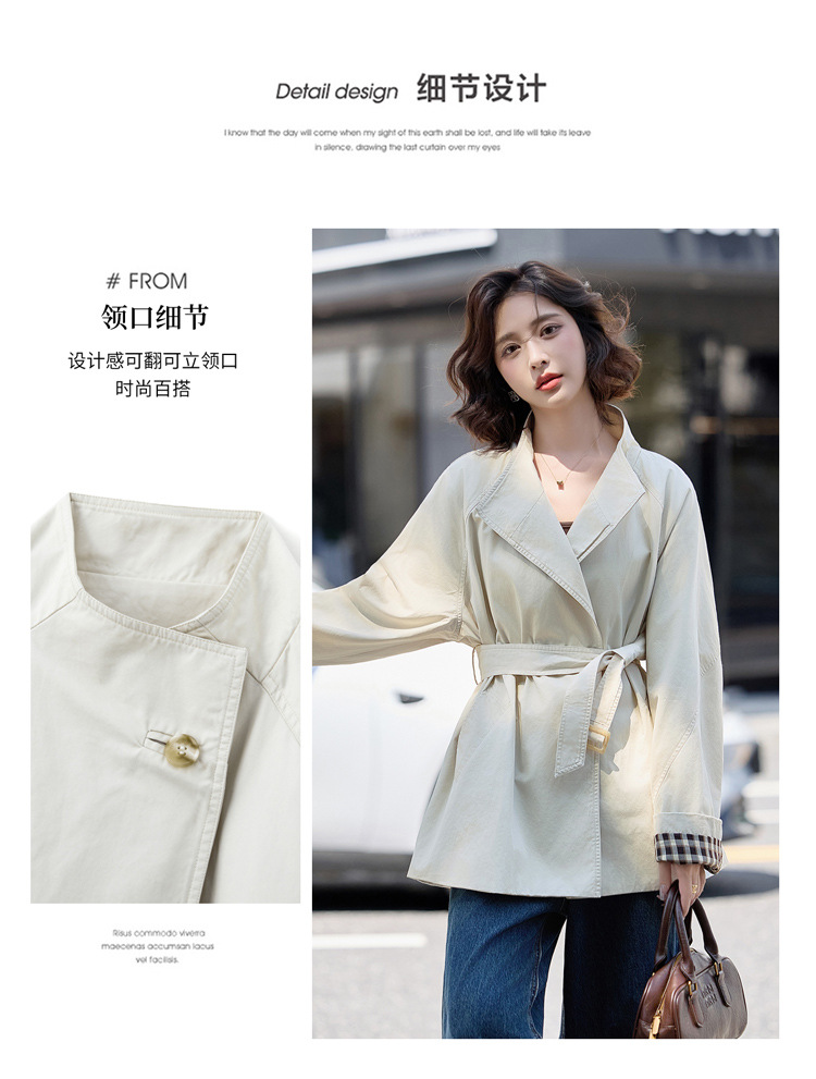 HR MEIQIN5698韩系休闲风衣外套宽松翻领格纹拼接上衣 商品图2