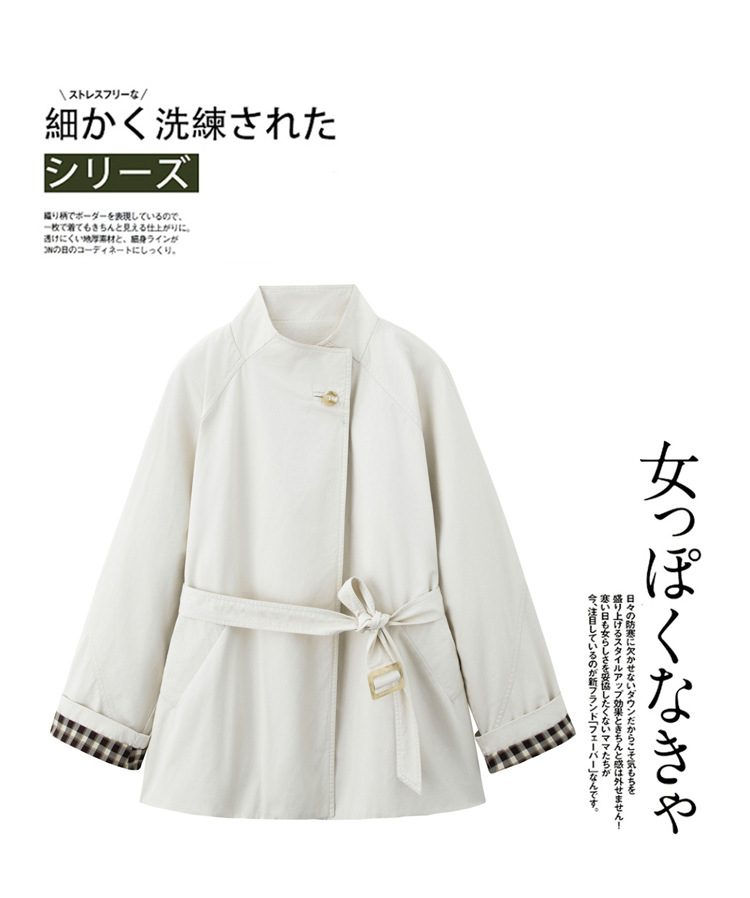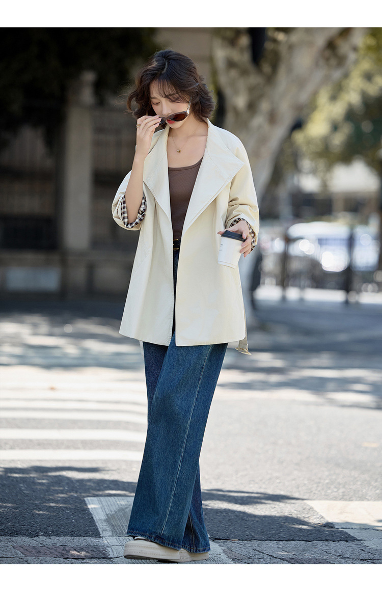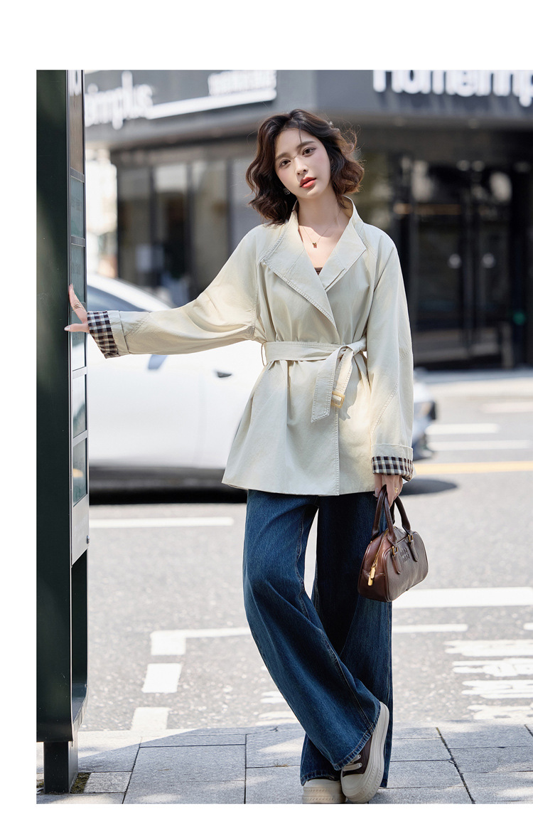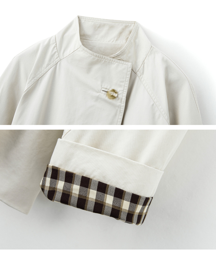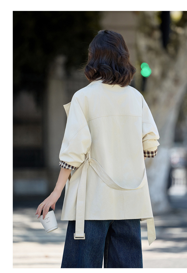 HR MEIQIN5698韩系休闲风衣外套宽松翻领格纹拼接上衣 商品图0