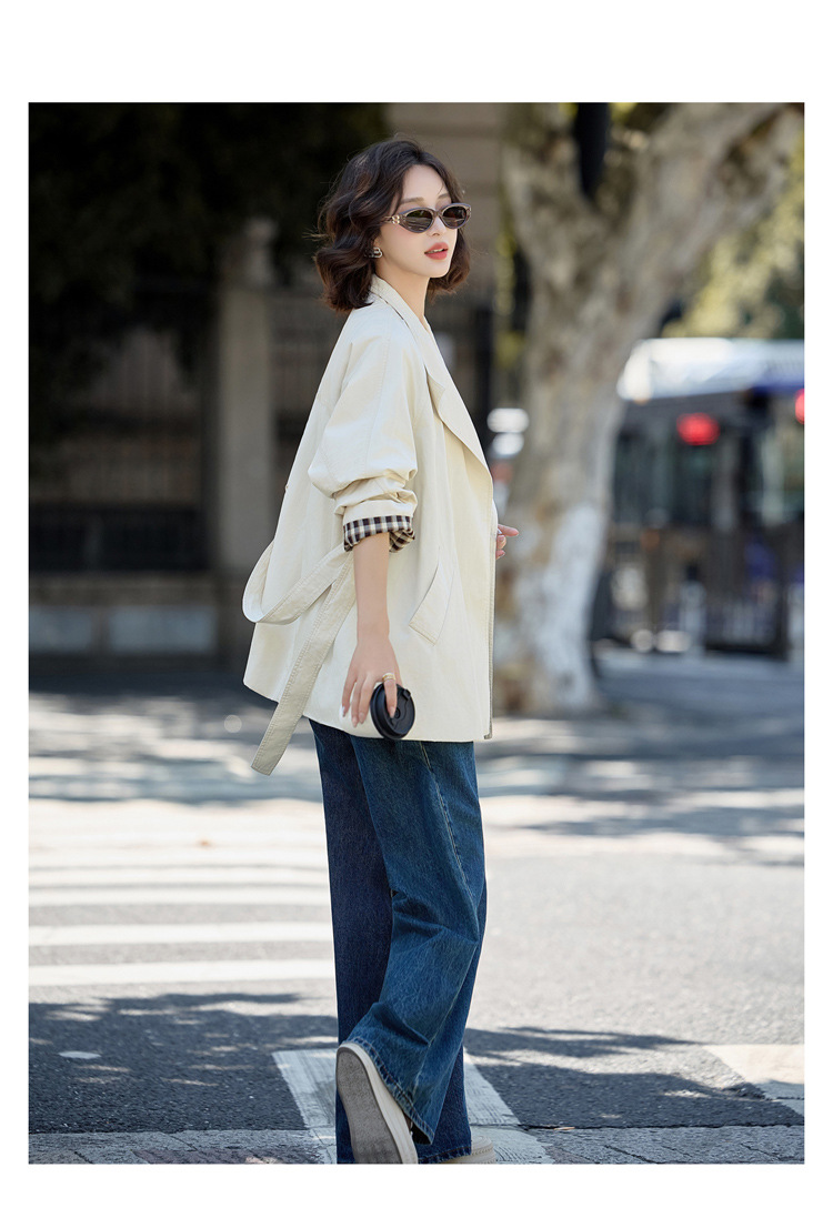 HR MEIQIN5698韩系休闲风衣外套宽松翻领格纹拼接上衣 商品图1