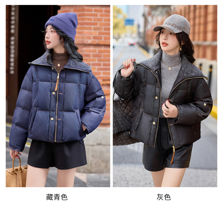 HR YJLY86821韩系羽绒外套时尚拉链拼接毛线领羽绒服白鸭绒 商品图2