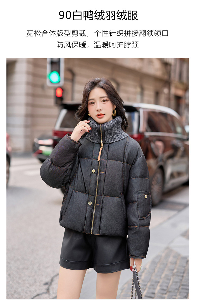 HR YJLY86821韩系羽绒外套时尚拉链拼接毛线领羽绒服白鸭绒 商品图4