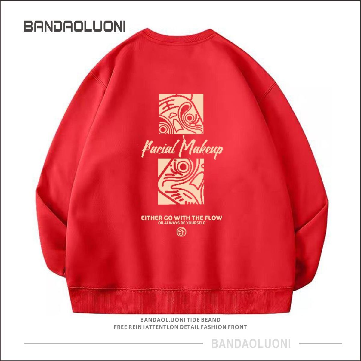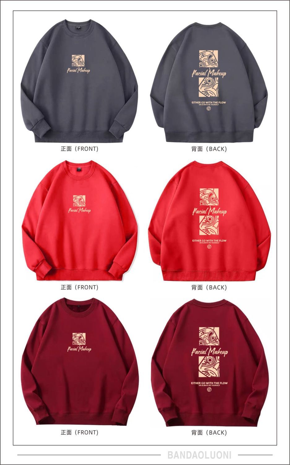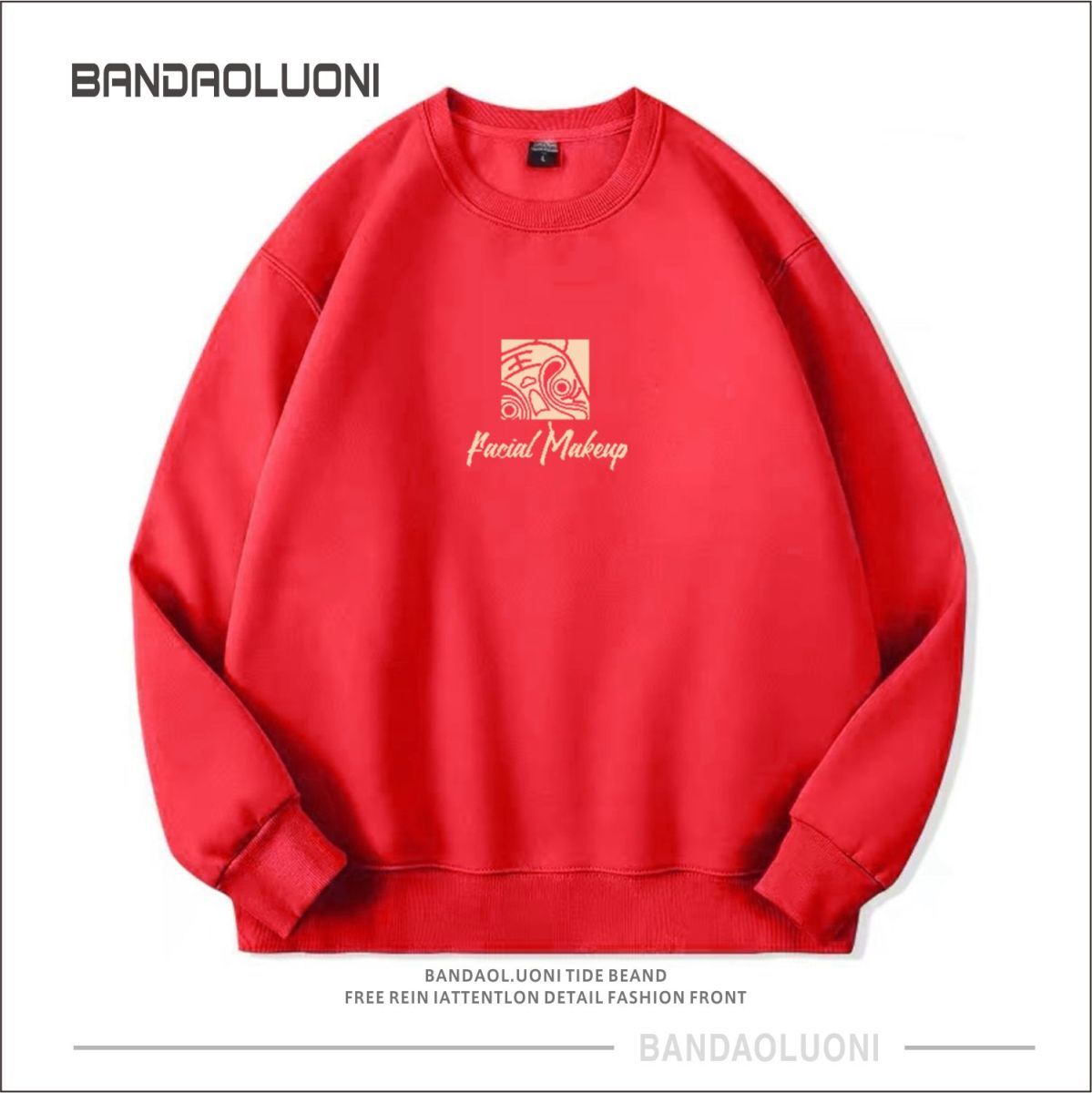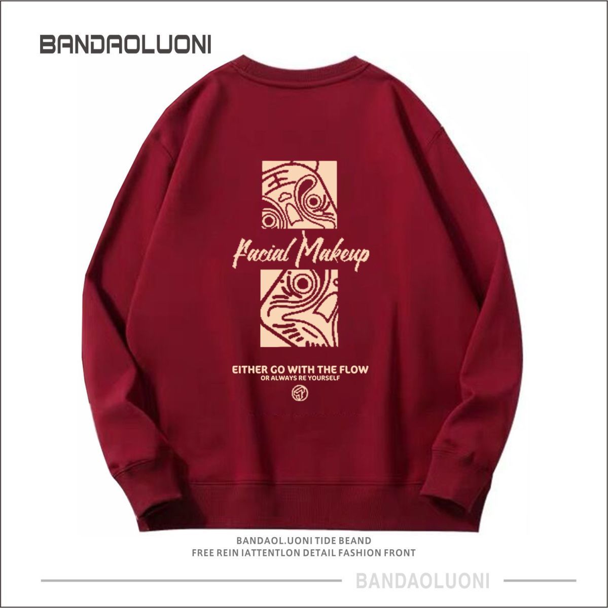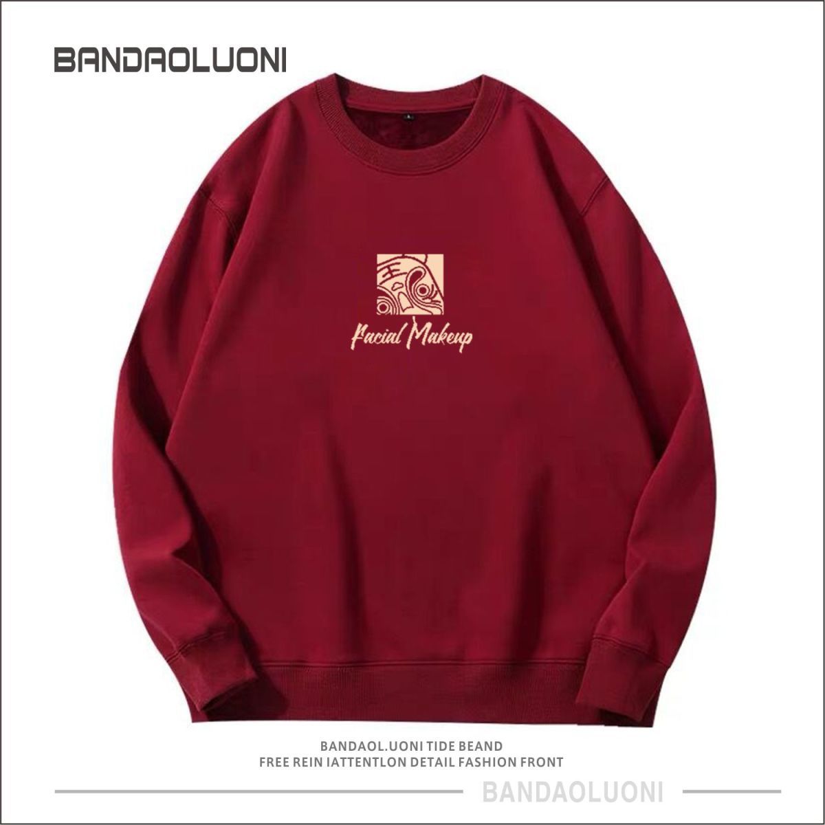 【国潮系列!】2023本命年酒红色春秋款潮流宽松加绒圆领卫衣男国潮gsm5