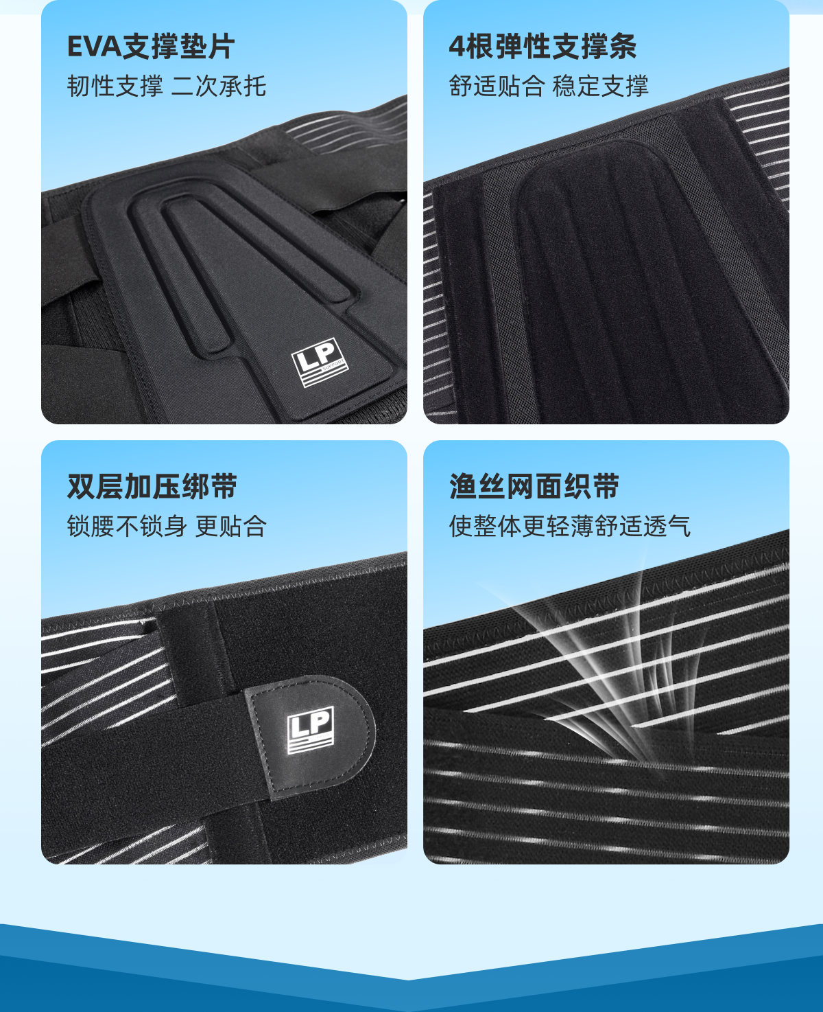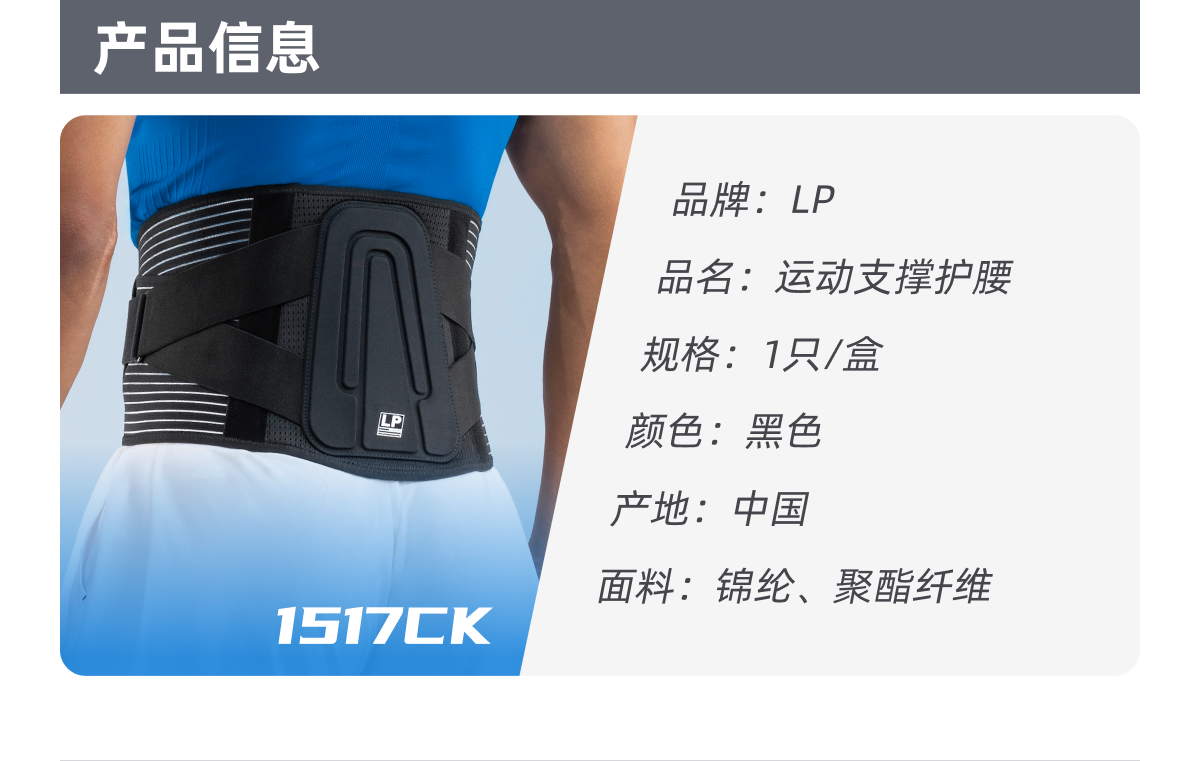 - 自1987年创立于美国以来,LP SUPPORT作为功能型运动装备品牌之一,LP以生理学和生物力学为基础,结合人体工学技术,研发出开创性的“激能压缩系列”运动装备,让运动者无羁释放运动潜能。