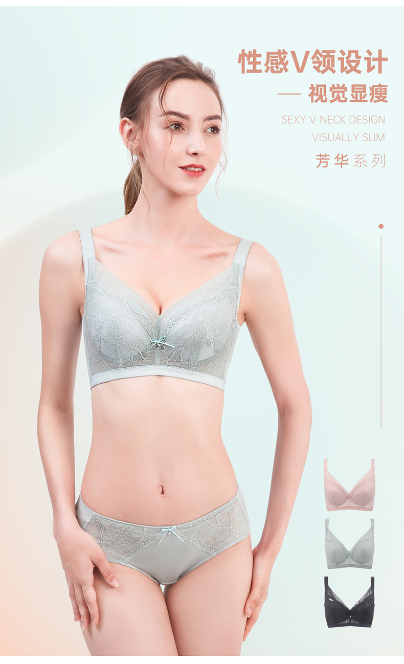 贝佳人文胸新款“心悦”深V全罩背心拼棉围-BW982221