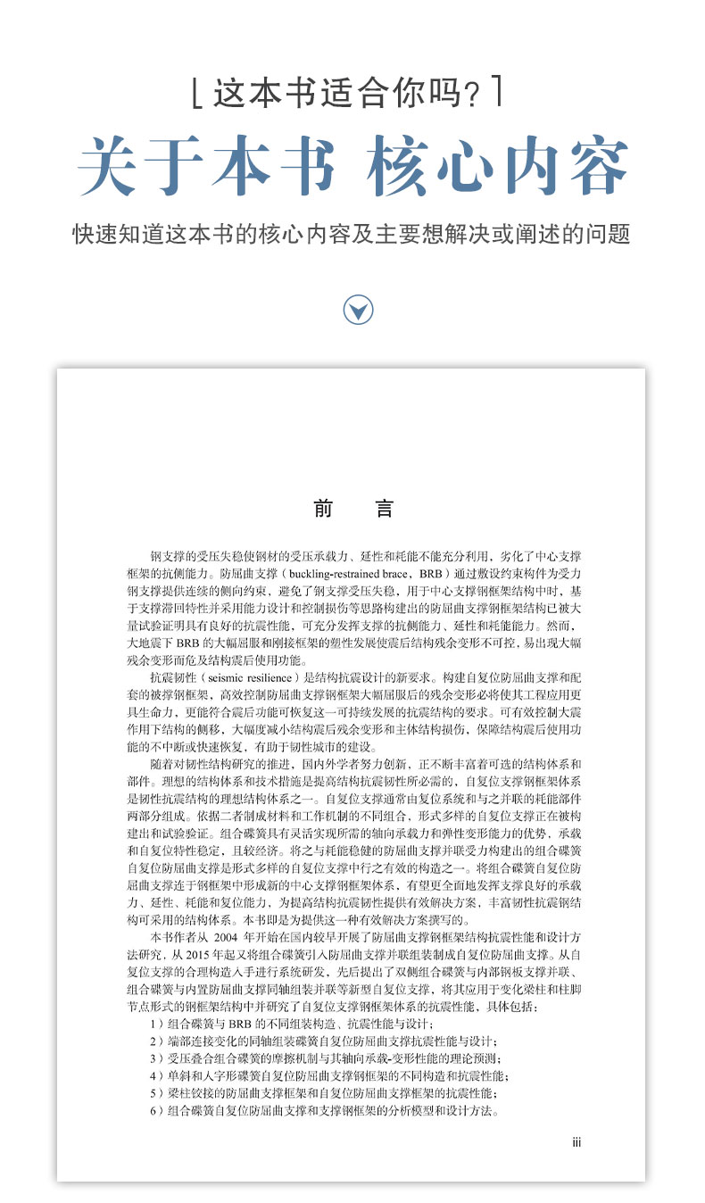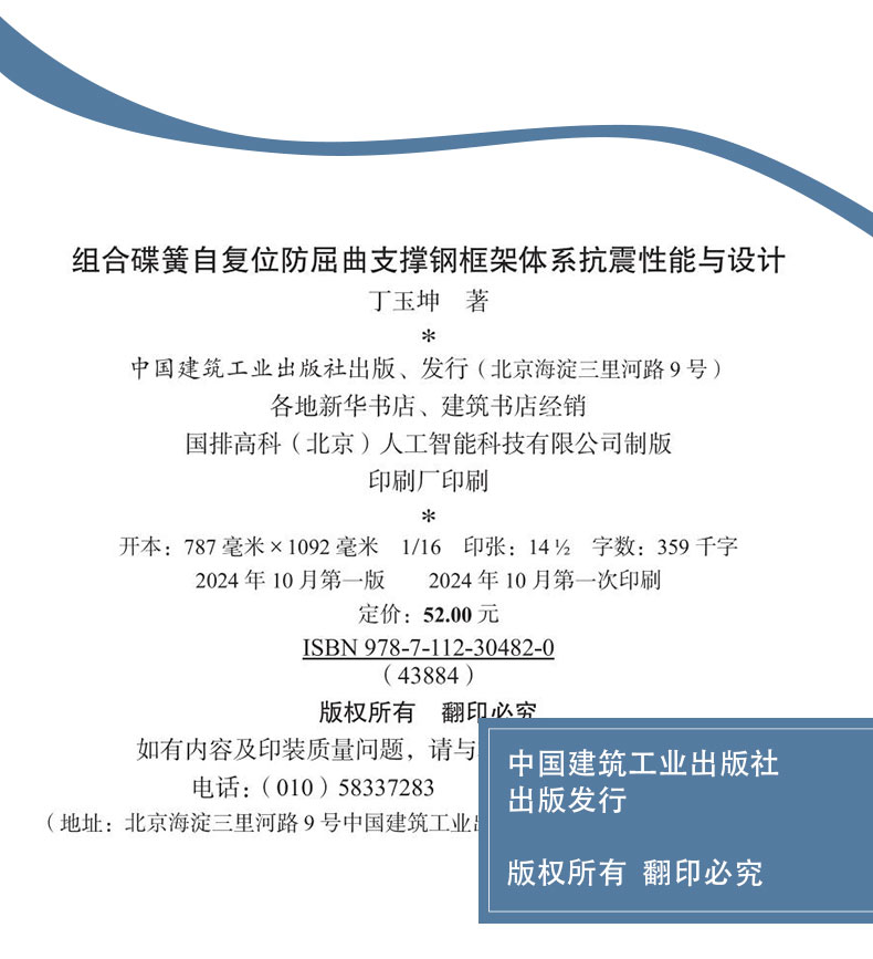 书名:组合碟簧自复位防屈曲支撑钢框架体系抗震性能与设计