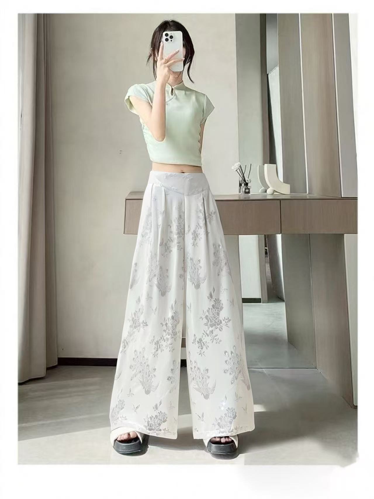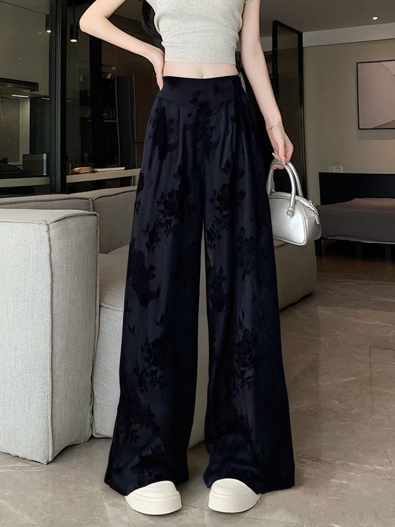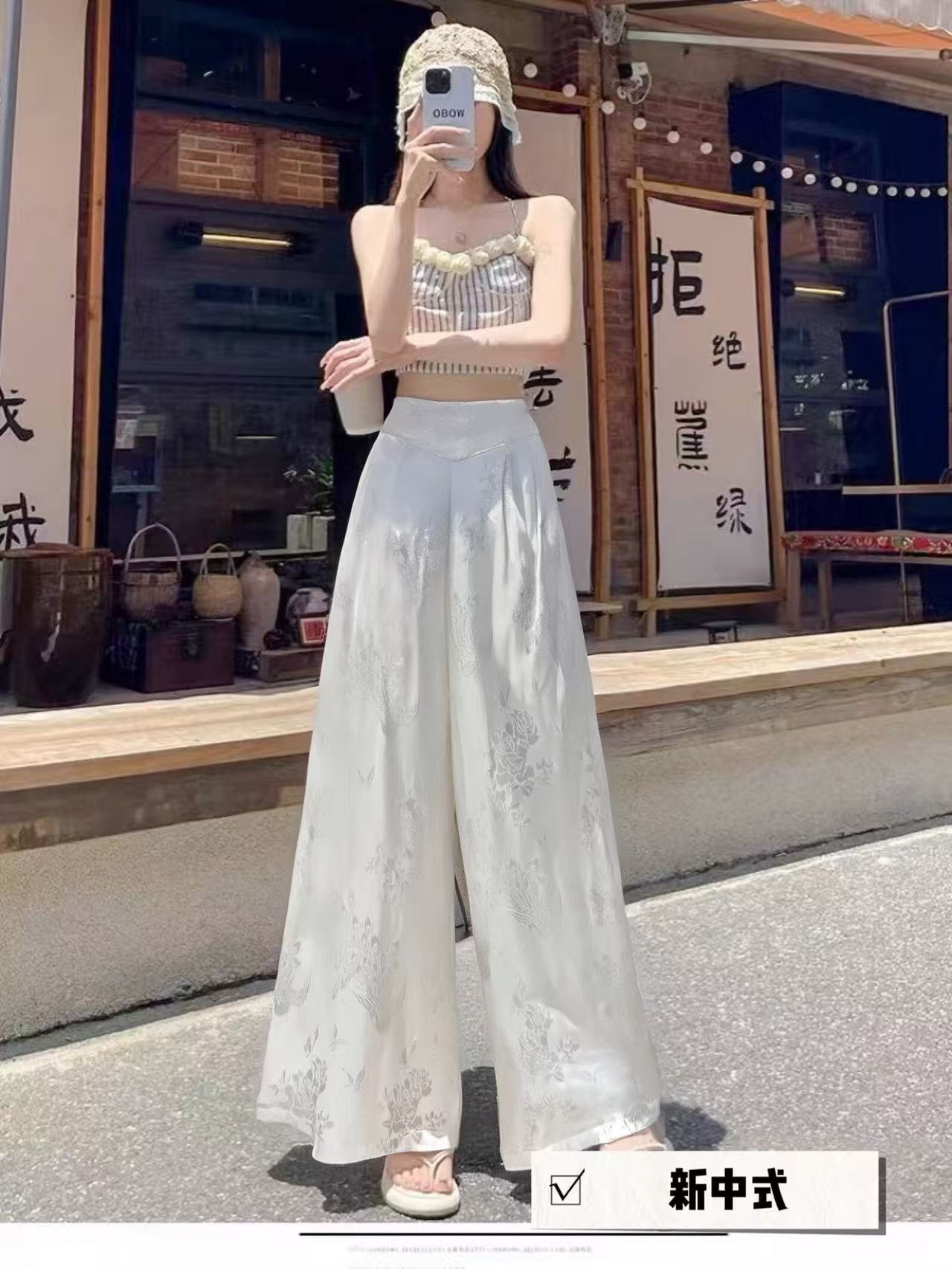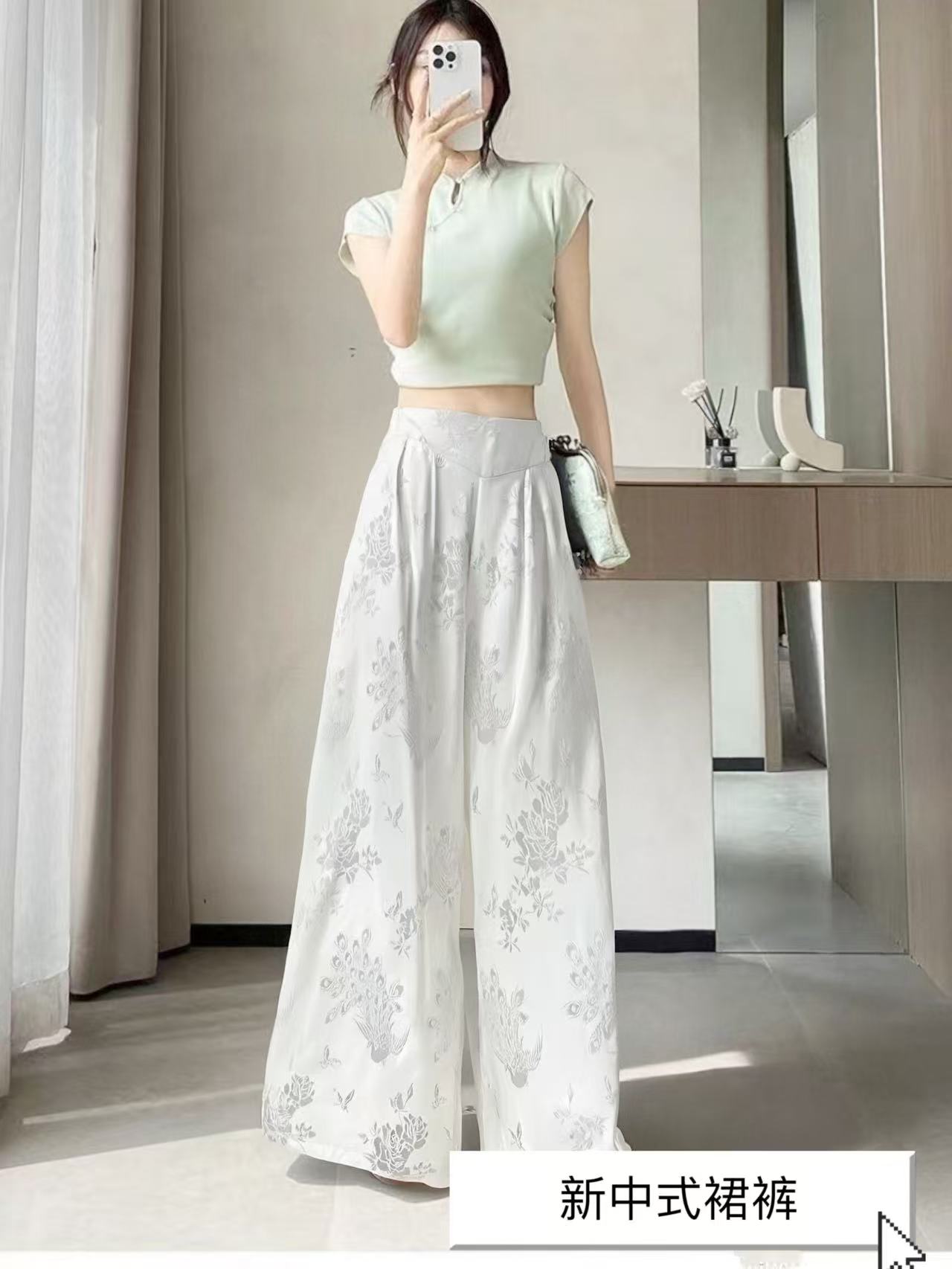 【MYBL】7909新中式精致提花大阔腿裙裤休闲裤-喜出