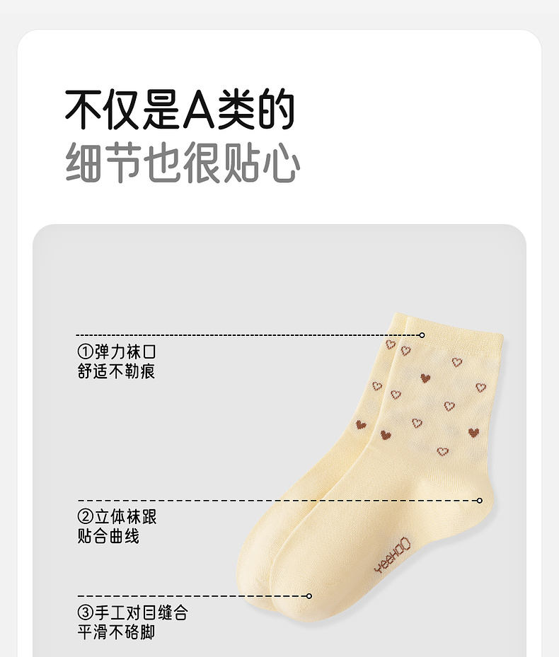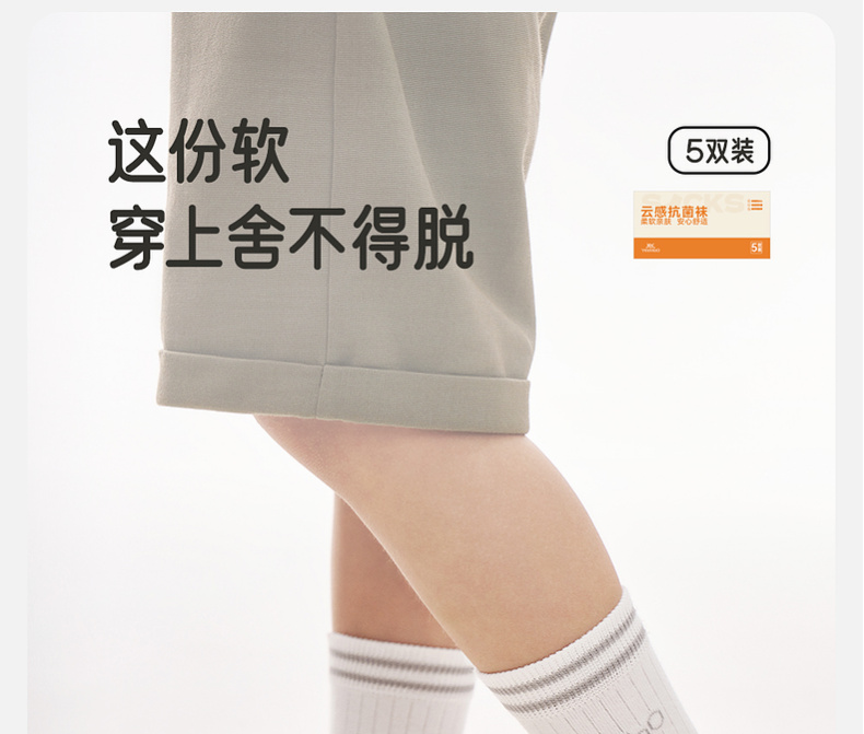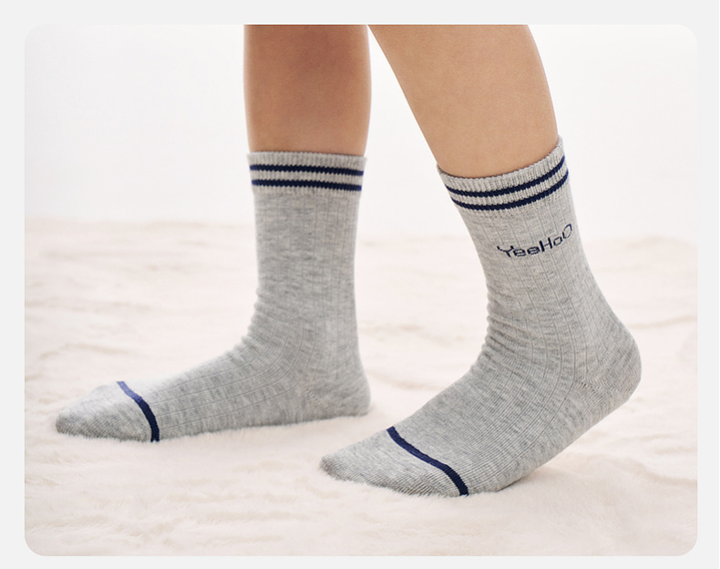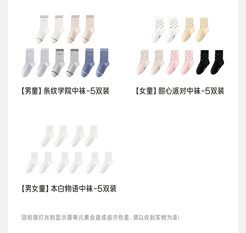 【5双装】英氏儿童袜子棉中袜男童女童秋冬隔凉袜地板袜简约百搭