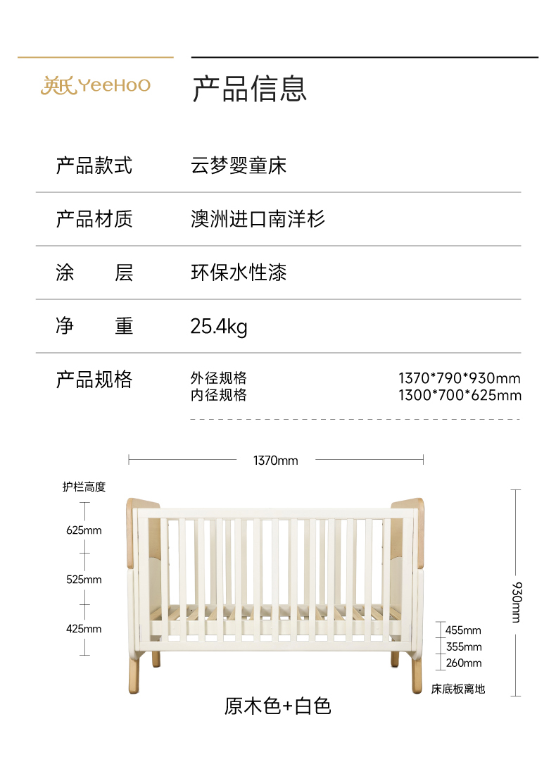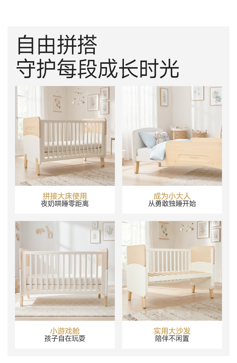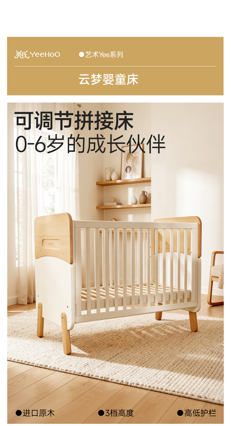 【商场同款】英氏婴儿床四季款男宝女宝2026新款木床新生儿床
