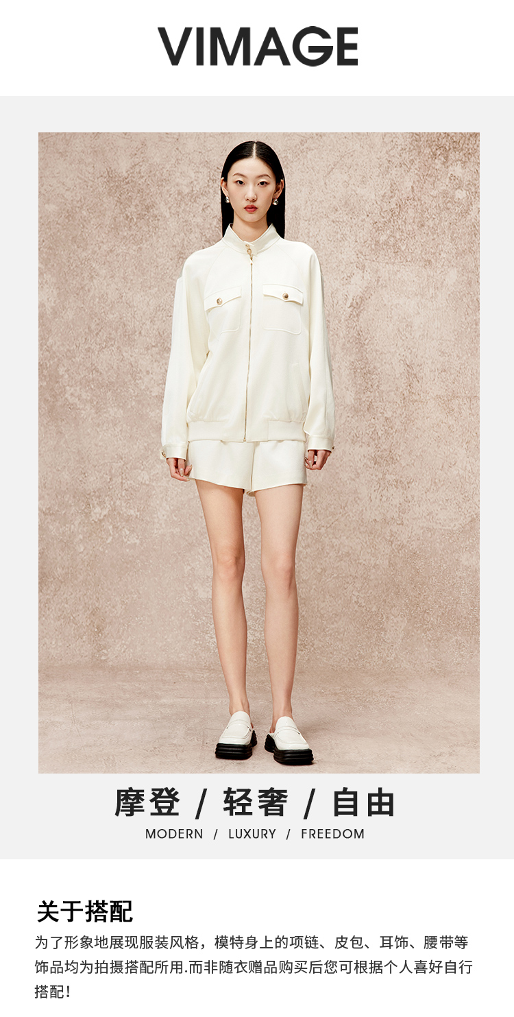 VIMAGE纬漫纪秋季新款时尚拉链宽松休闲外套V2203839