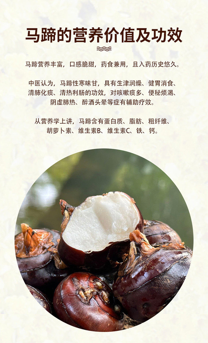 ①马蹄皮薄不能磕碰,破皮后会迅速氧化,为了易储存,发货是带泥的,介意者慎拍。