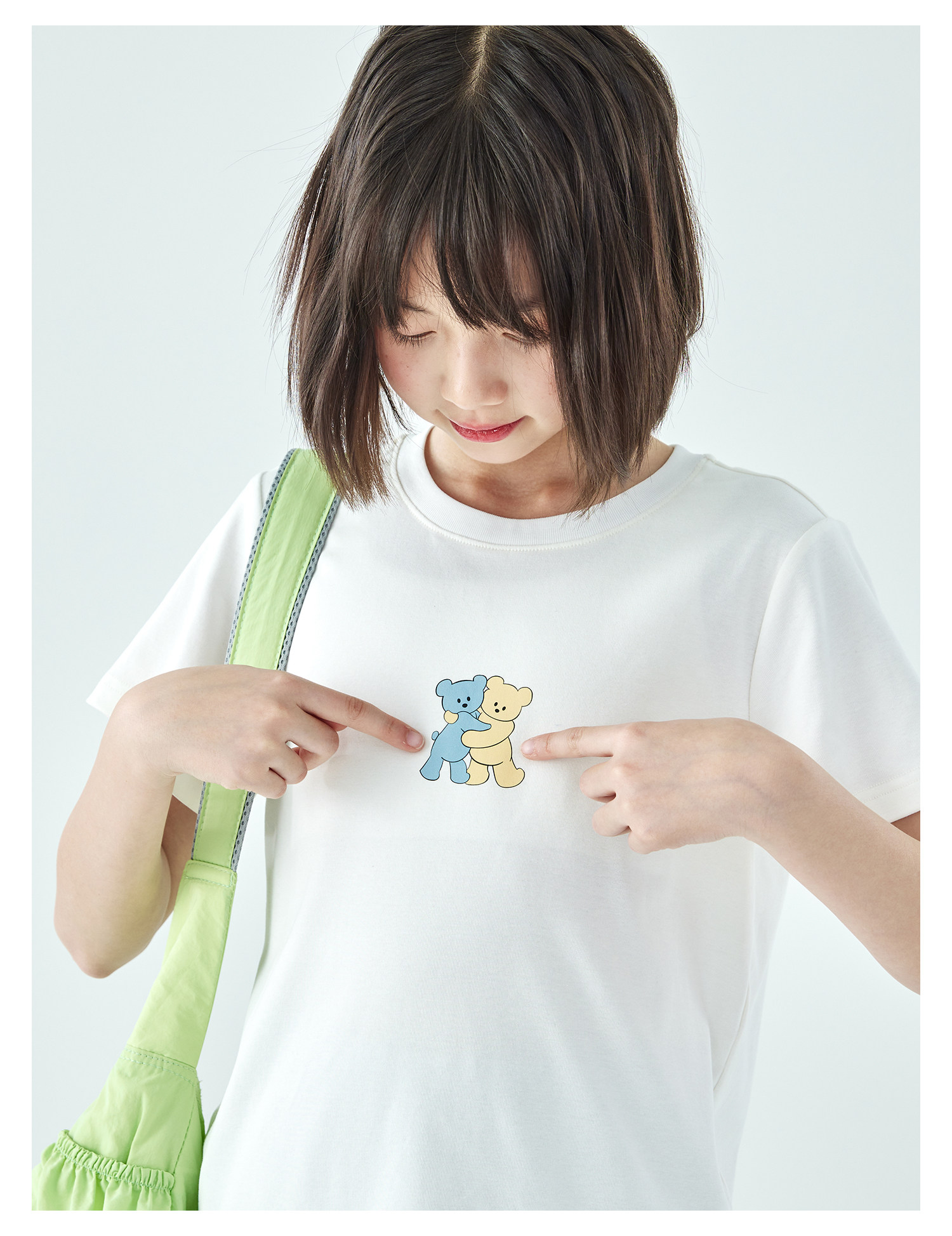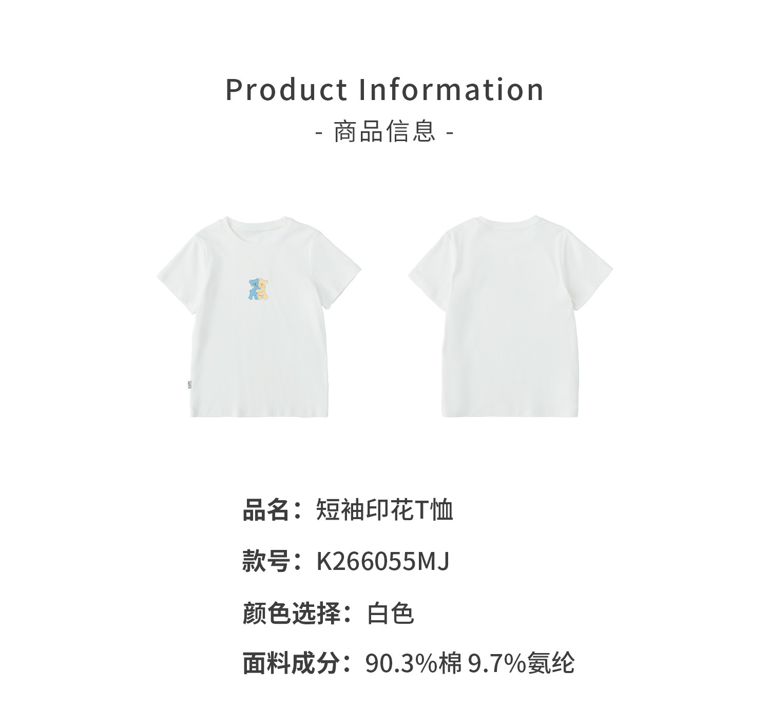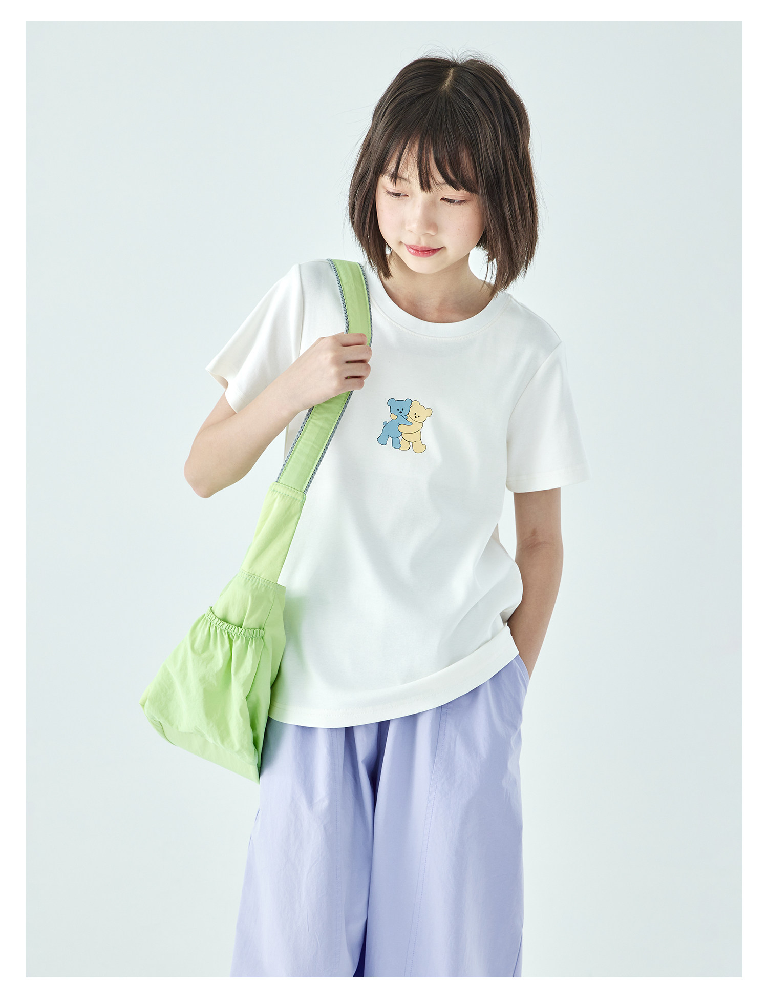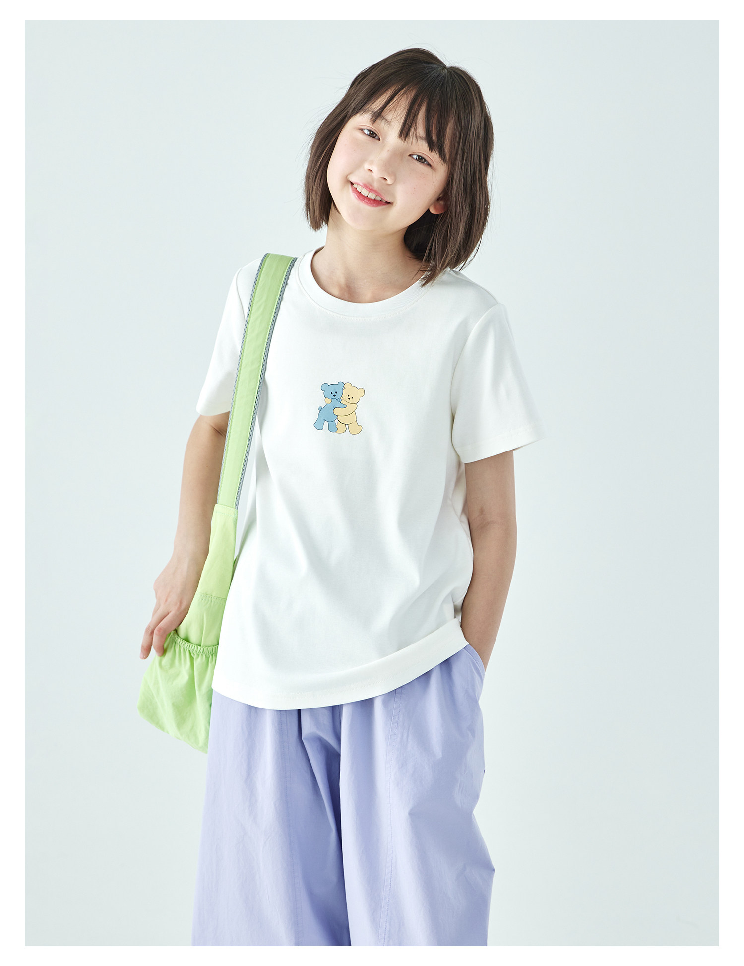 棵初26年夏季新款亲子中大女童萌趣小熊印花T恤棉氨凉感针织短袖