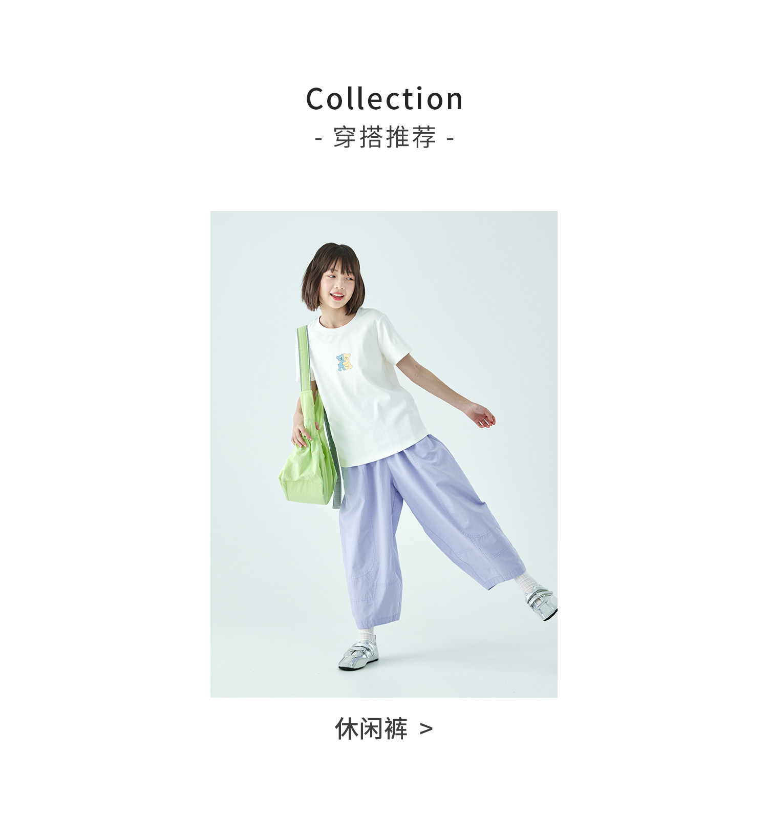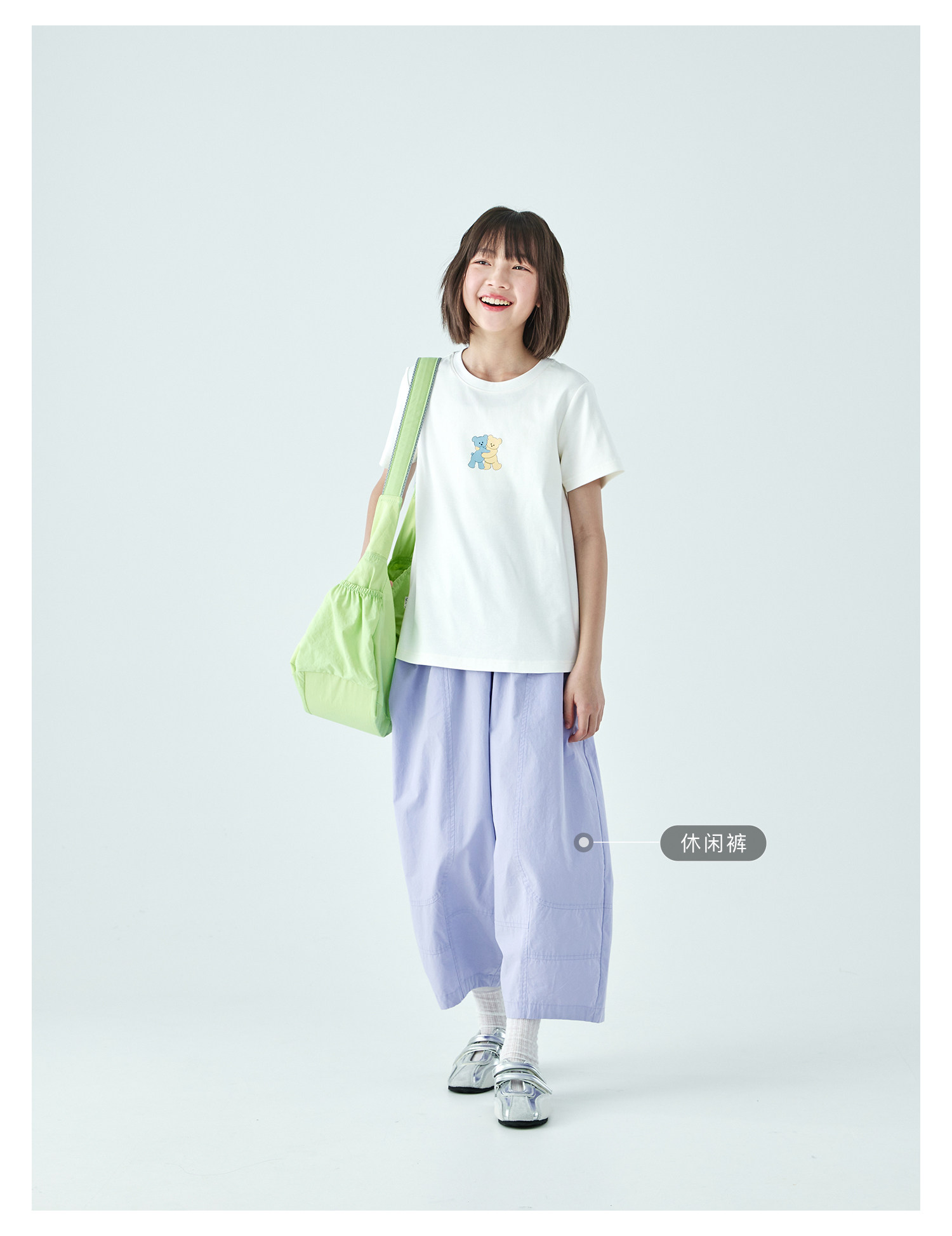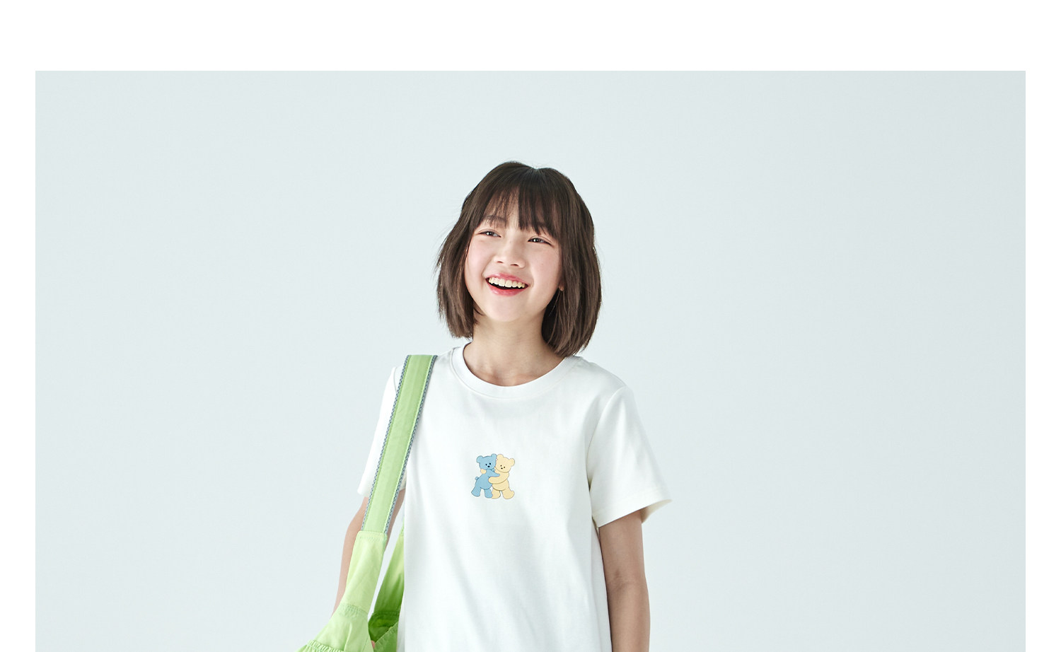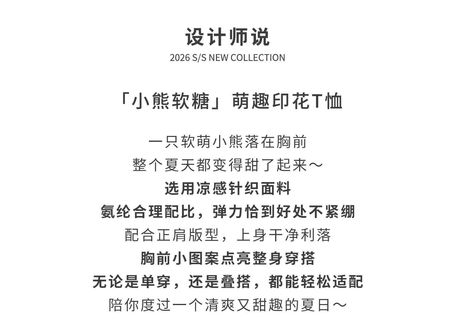 棵初26年夏季新款亲子中大女童萌趣小熊印花T恤棉氨凉感针织短袖