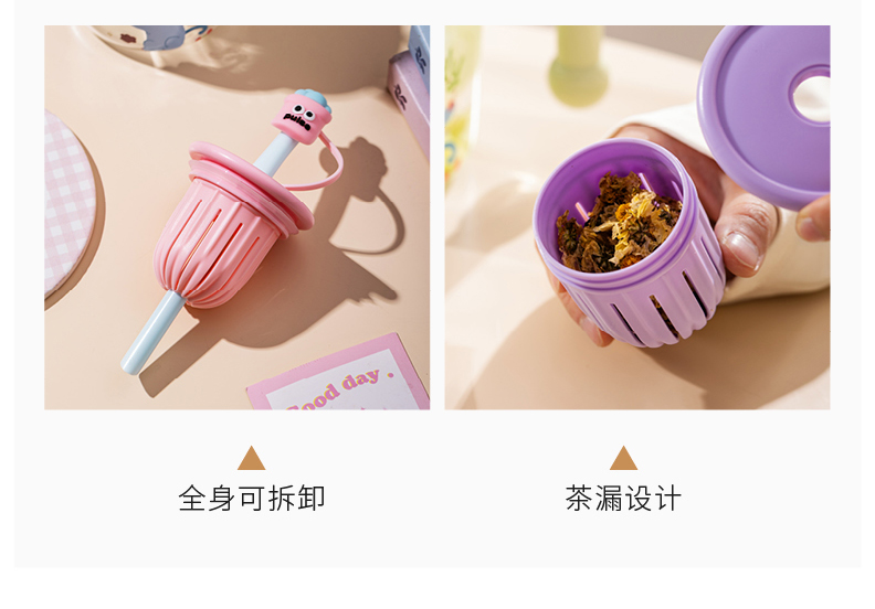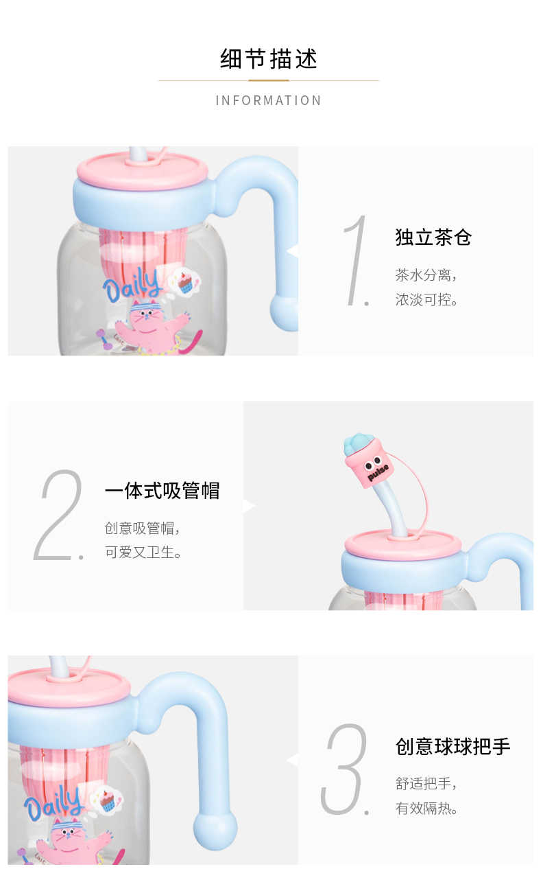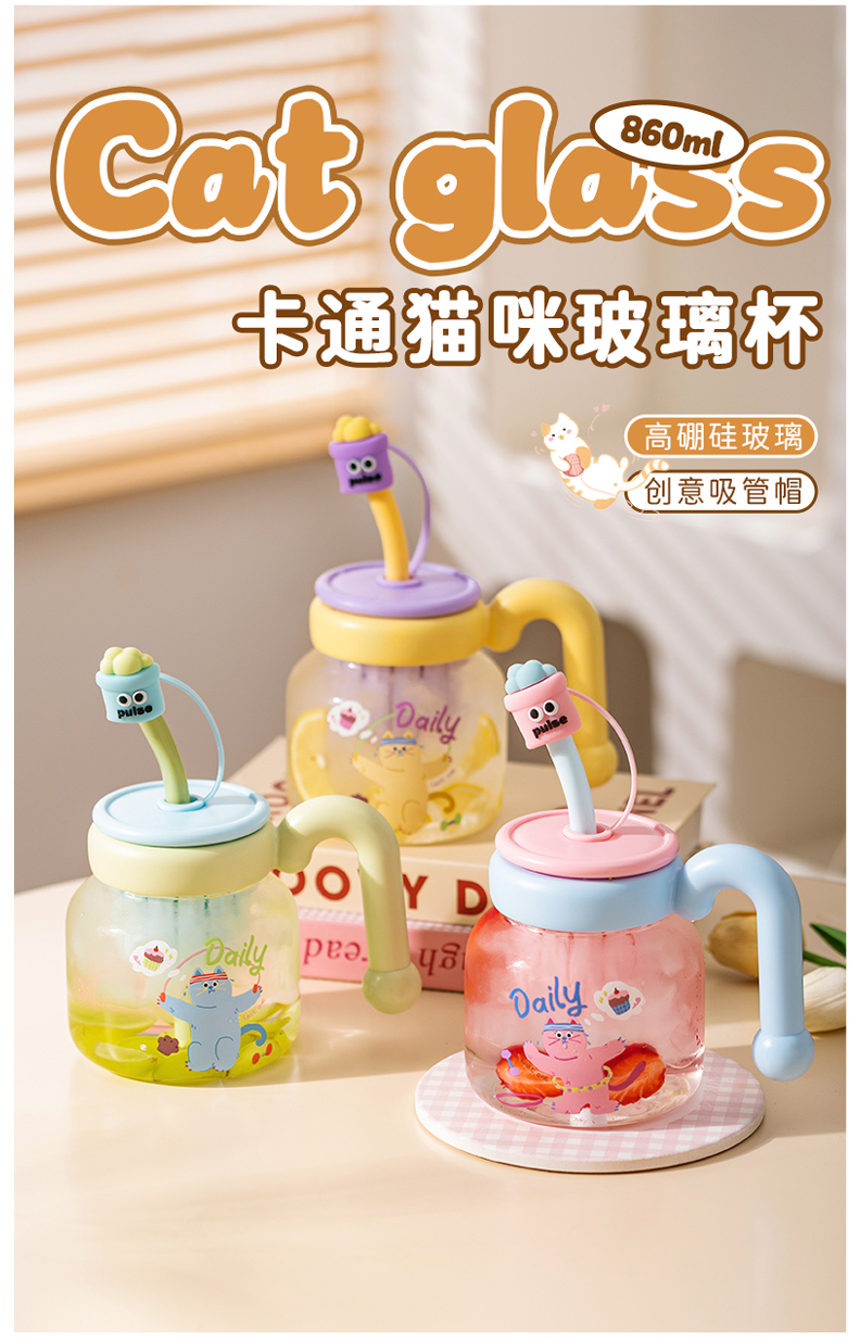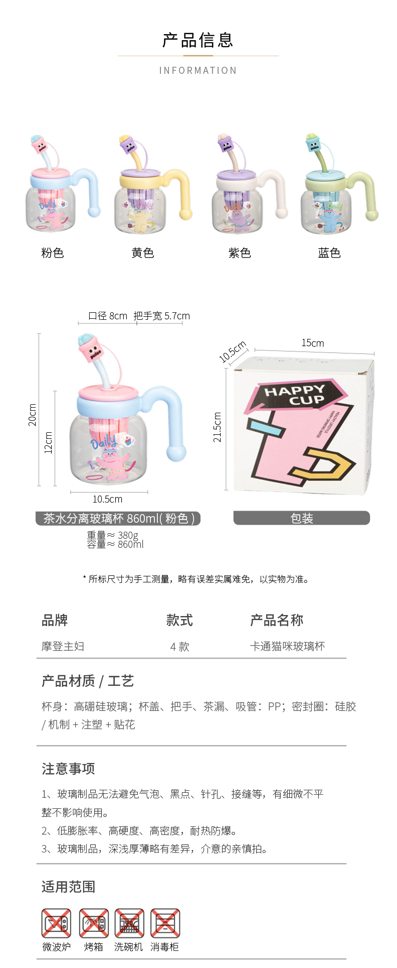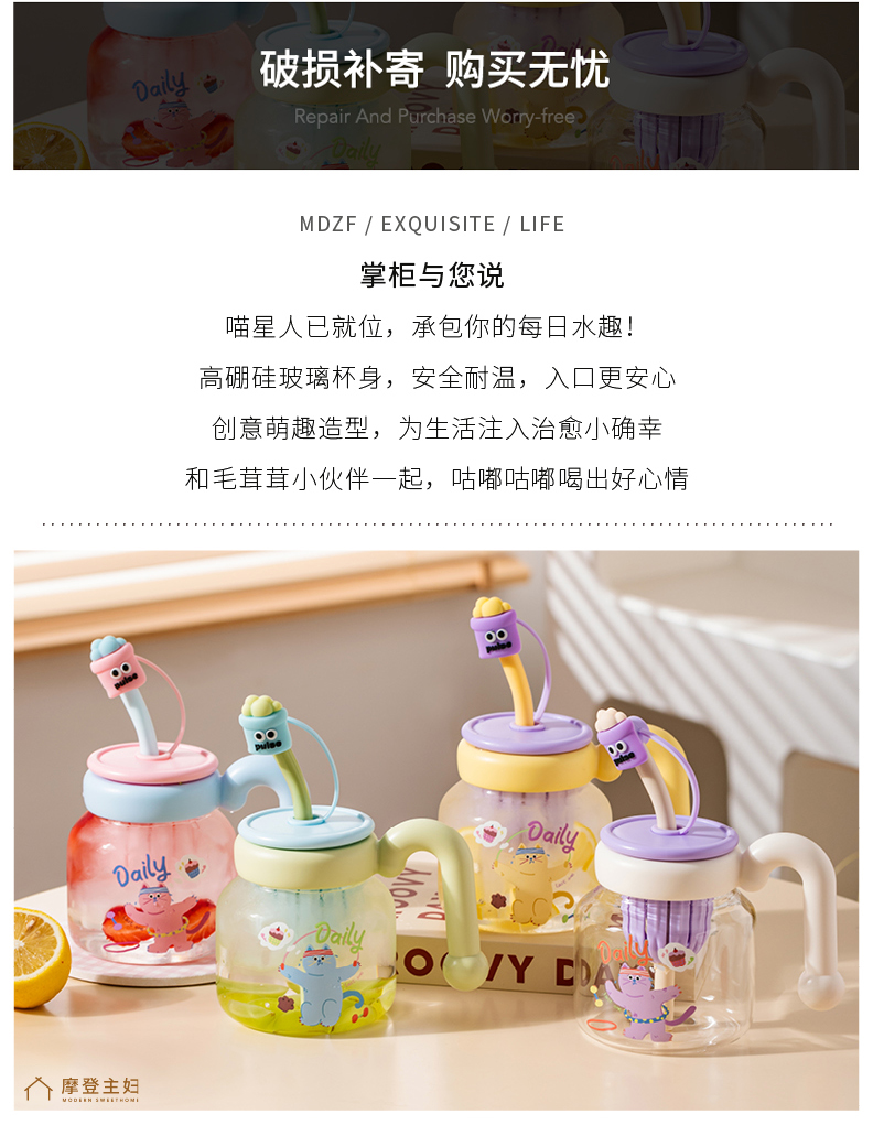 摩登主妇带把手玻璃水杯2025新款吸管杯子茶水分离杯高颜值果汁杯
