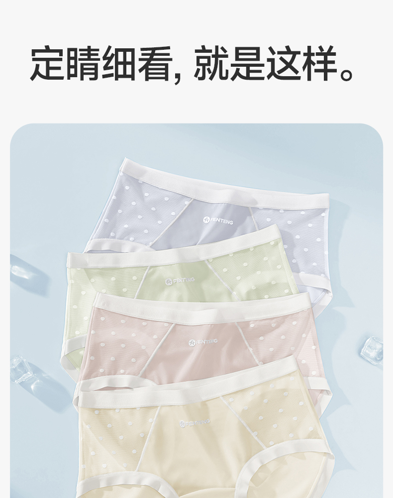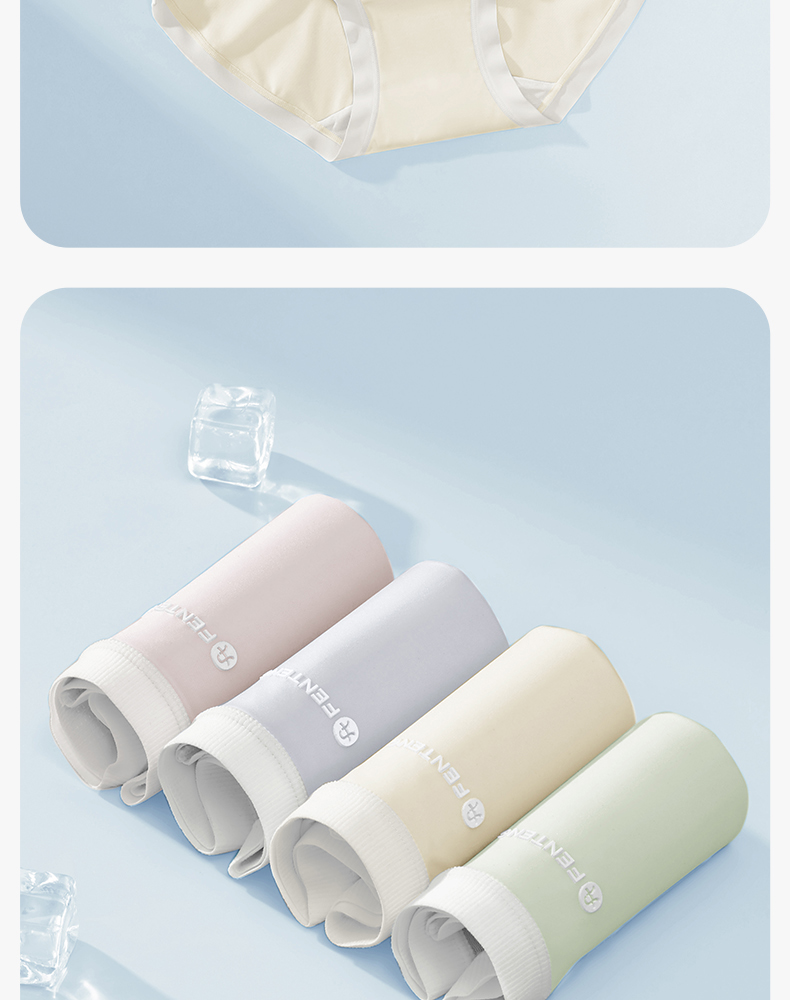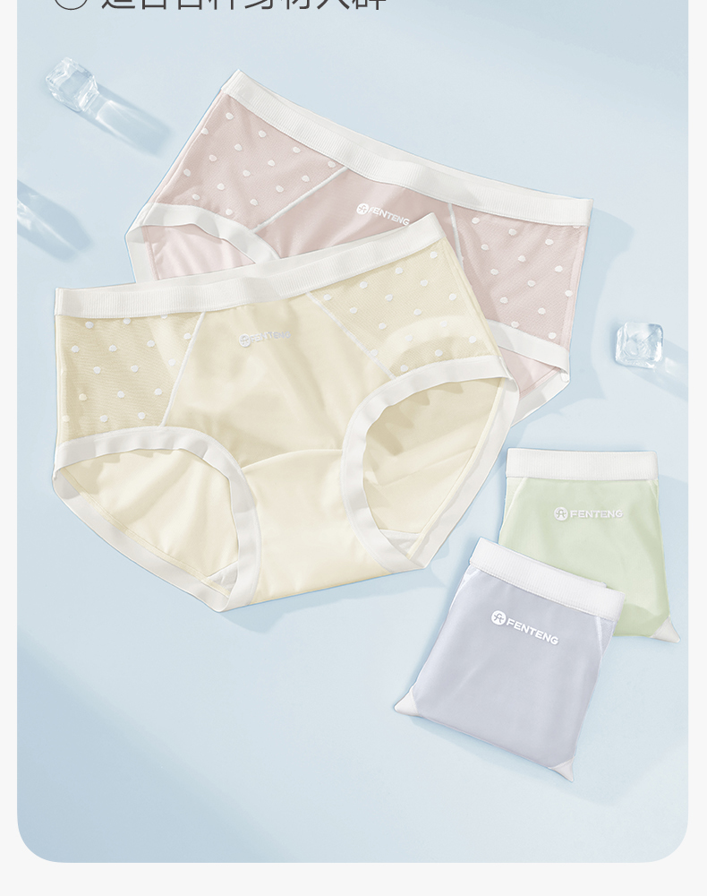 芬腾女士冰丝内裤10a级抗菌裆三角裤夏季薄款透气中腰大码短裤头