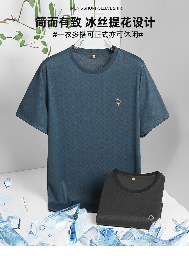 【冰丝】【DWP】大依优型大码短袖T恤圆领体恤加肥加大男士大号透气舒适夏季半袖 商品图1