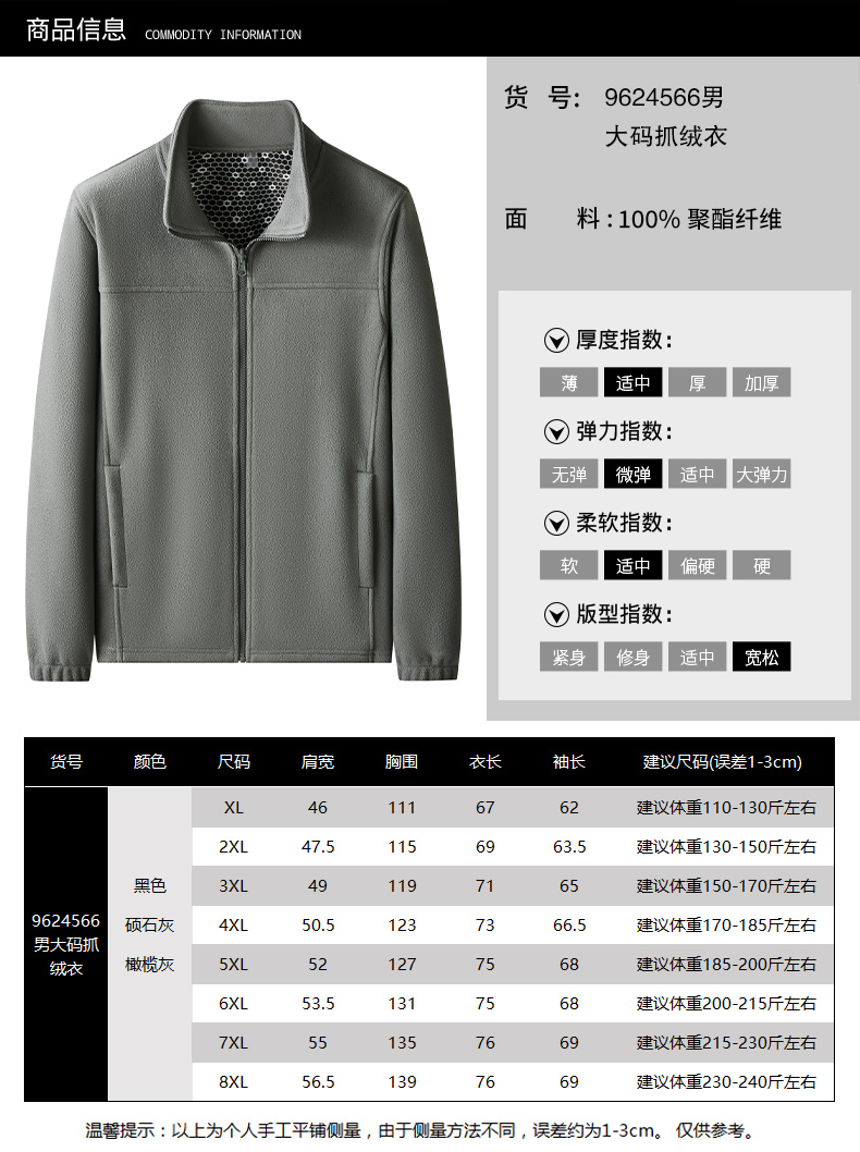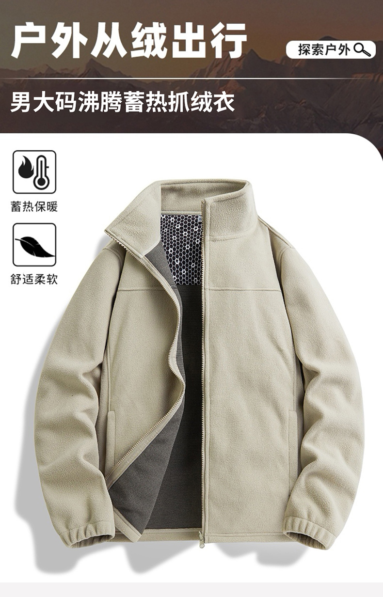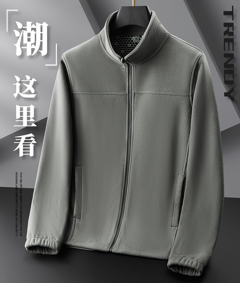 【抓绒衣】【新款DZP】大依优型大码男装立领夹克抓绒衣加肥加大休闲夹克胖子宽松外套上衣