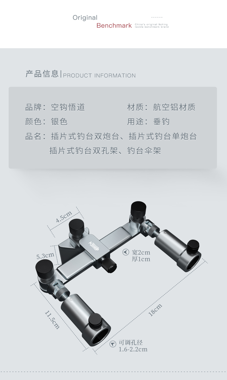 空钩悟道插片式钓台配件加厚铝合金炮台架饵料架万向鱼竿支架配件
