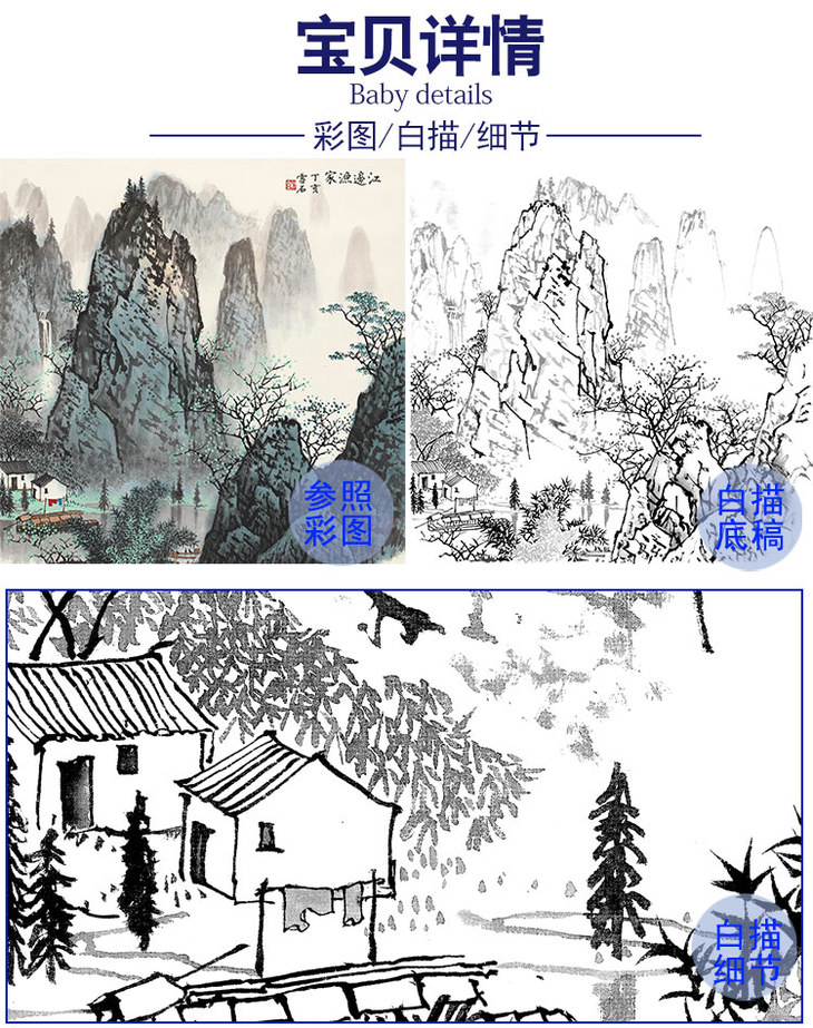 工笔画白描底稿-白雪石斗方山水-小品册页-BX37
