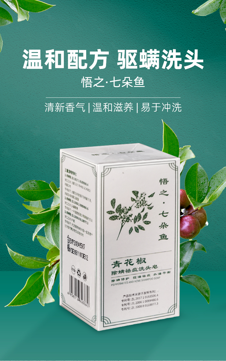 【韩国专利买多增多】七朵鱼青花椒除螨洗头皂100克/块控油去屑滋补发根头皮保湿不刺激男女通用三大专利成分