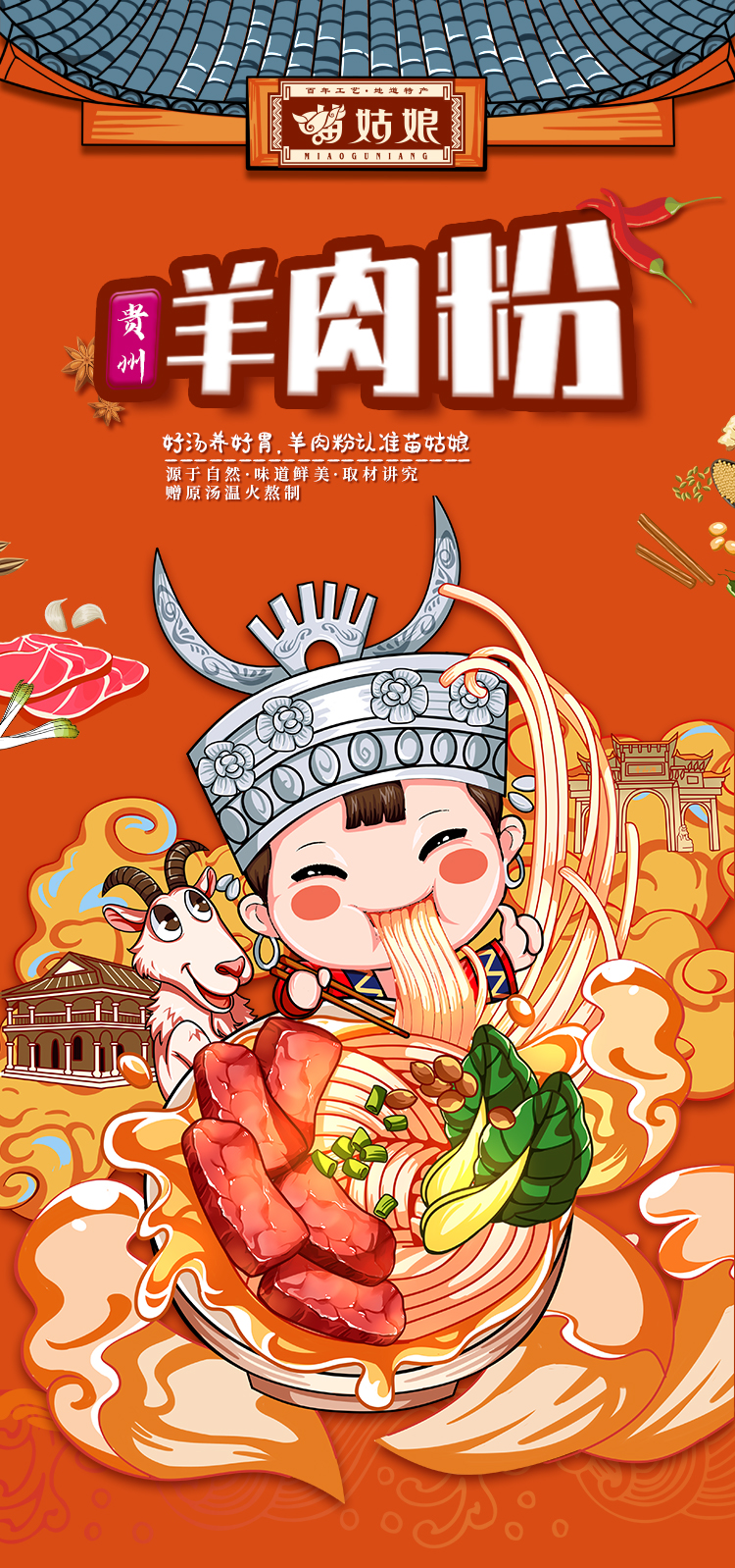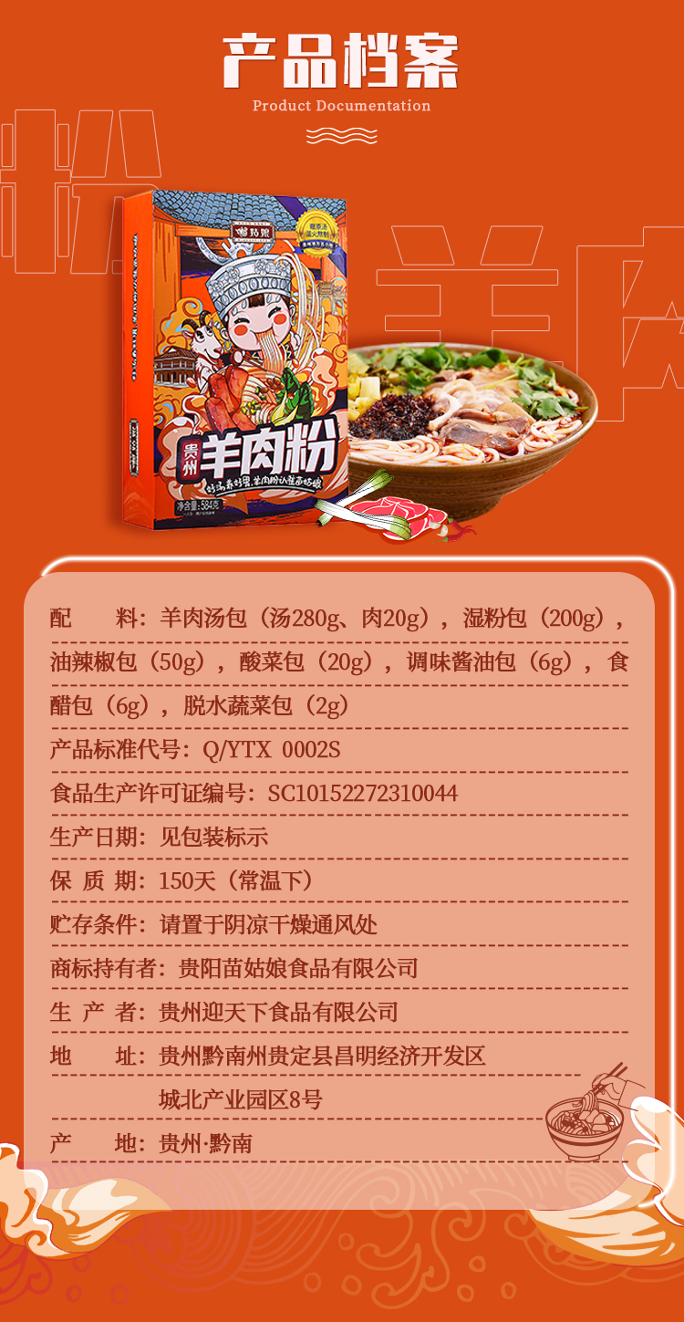 苗姑娘 贵州特产 原汤米粉组合 羊肉粉*2+牛肉粉*2+贵州红酸汤*3+香辣脆*1