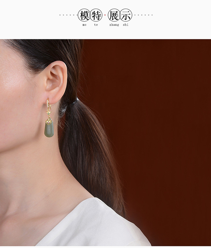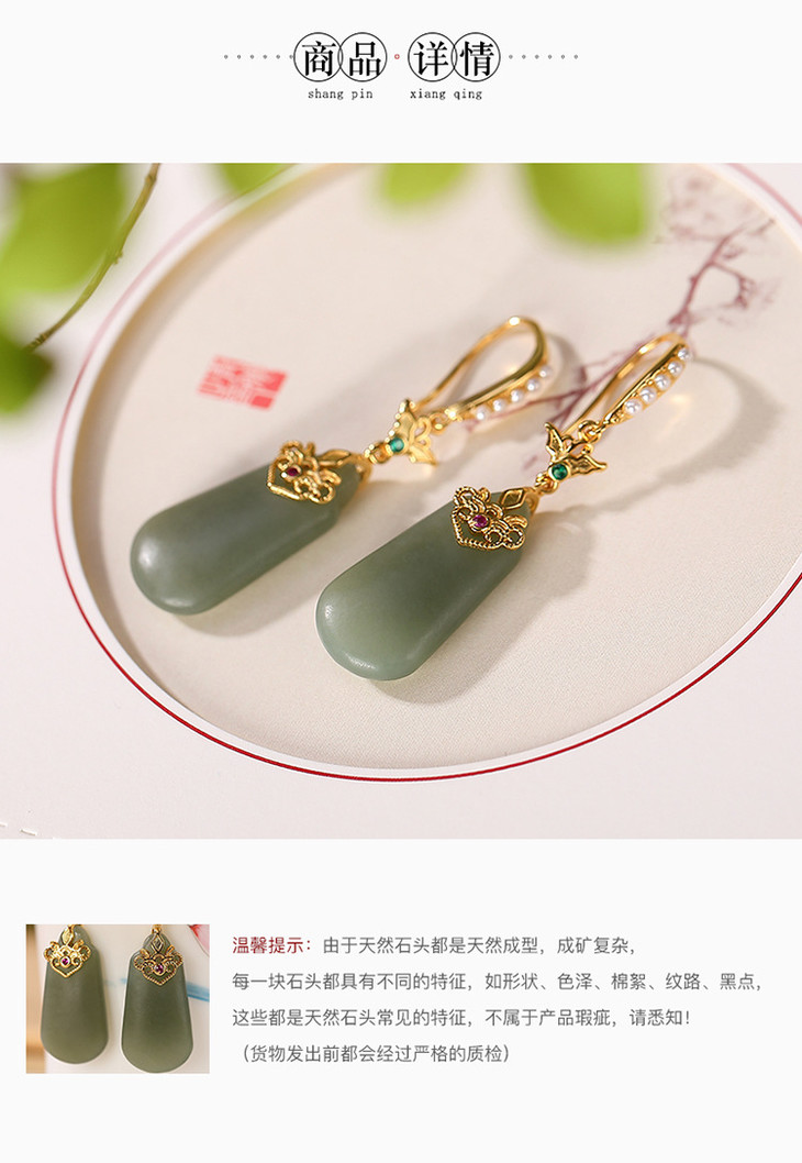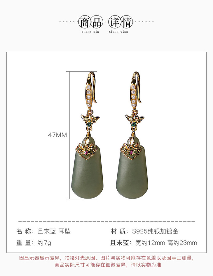 CW0111-62 S925纯银镀金和田且末蓝耳环个性蝴蝶复古如意气质女款耳坠