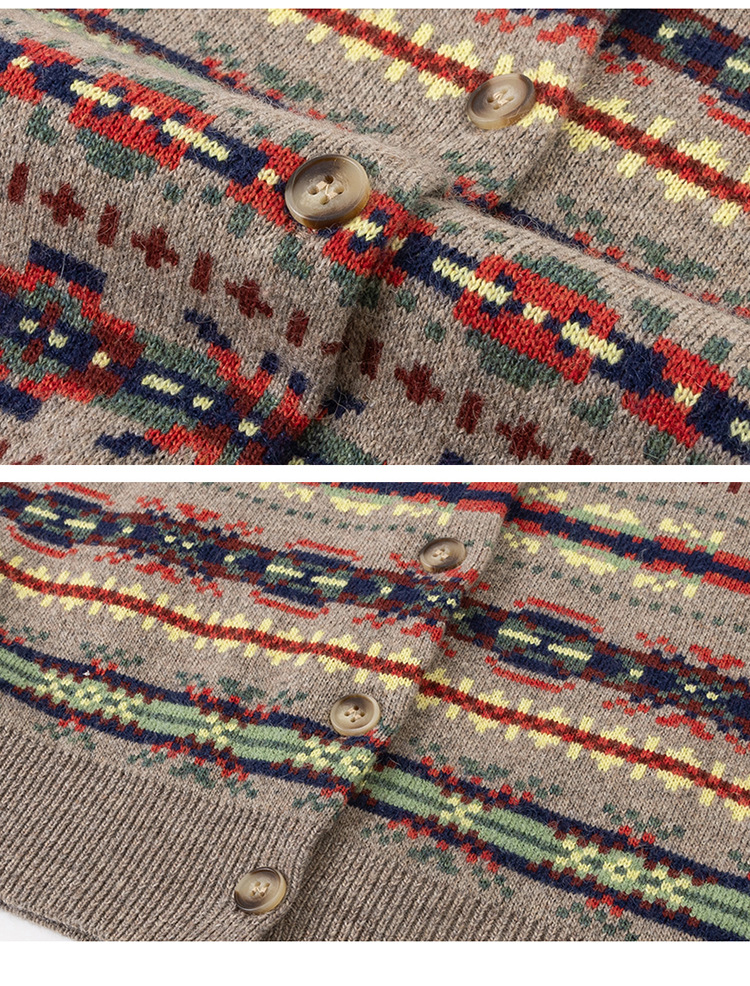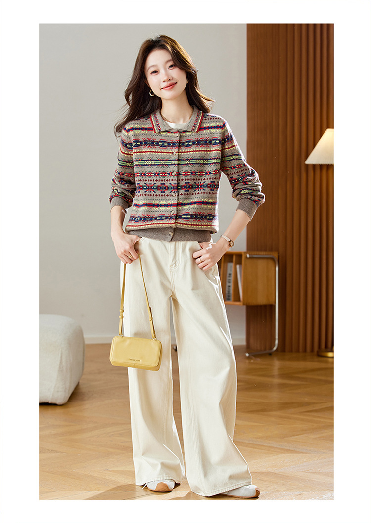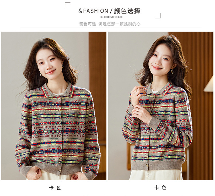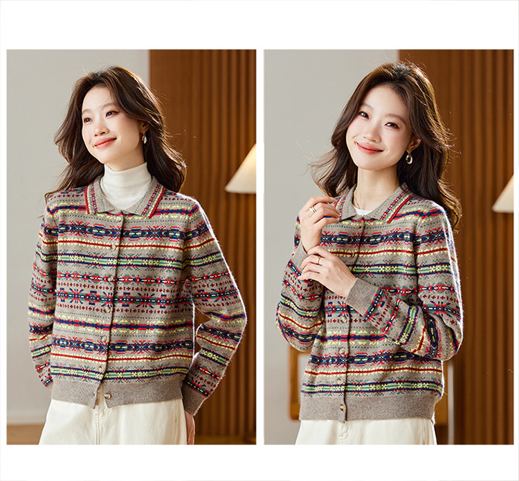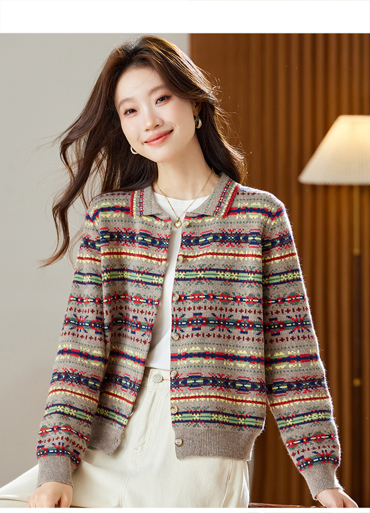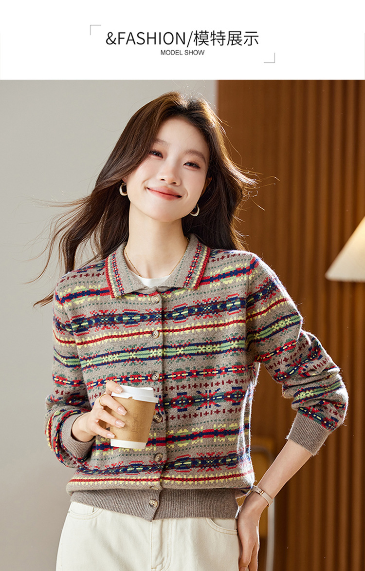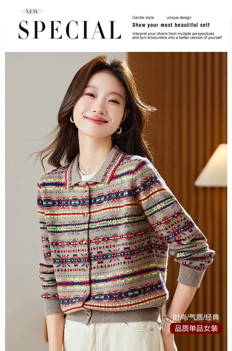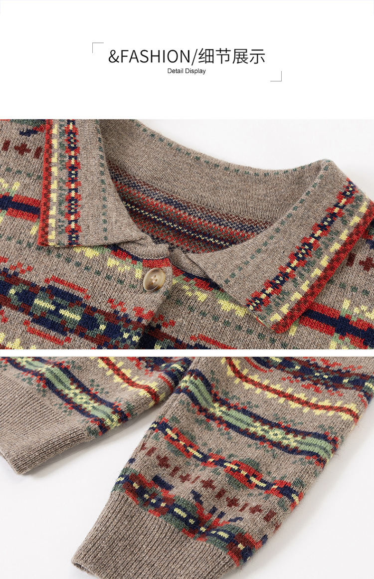 CC【重工费尔岛提花】针织开衫女2025冬季新款宽松软糯翻领复古上衣