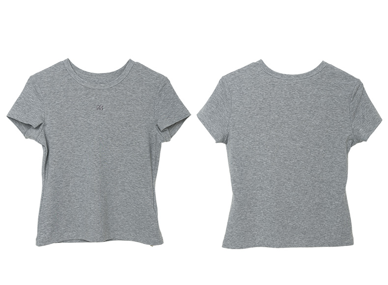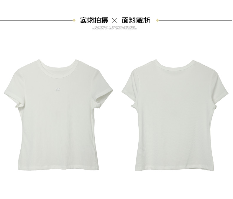 夏季新款白色基础款 T 恤 修身显瘦弹力棉圆领刺绣标打底衫