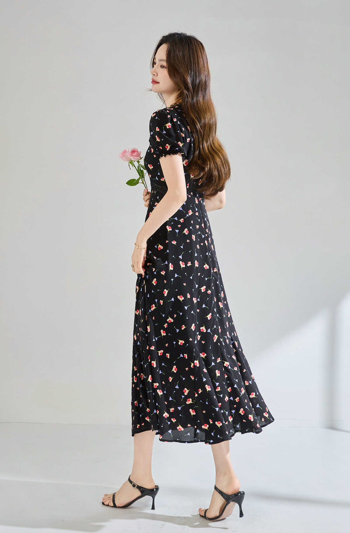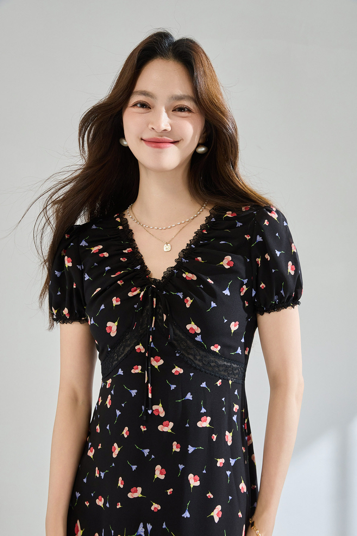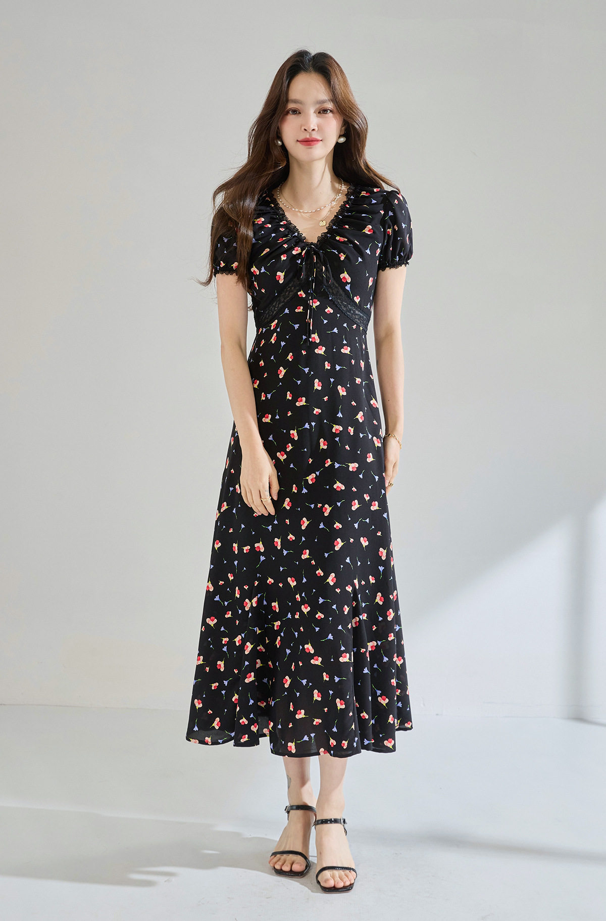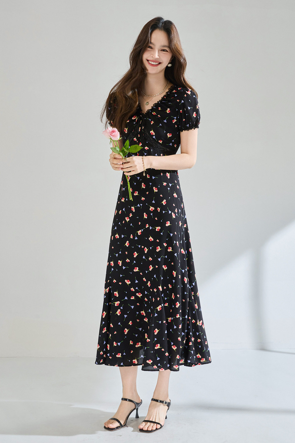 「高货sh」全新升级【铂金会员293/天猫399/差价106】(05234)洛诗琳木耳边蕾丝拼接印花连衣裙2026夏季气质收腰茶歇裙