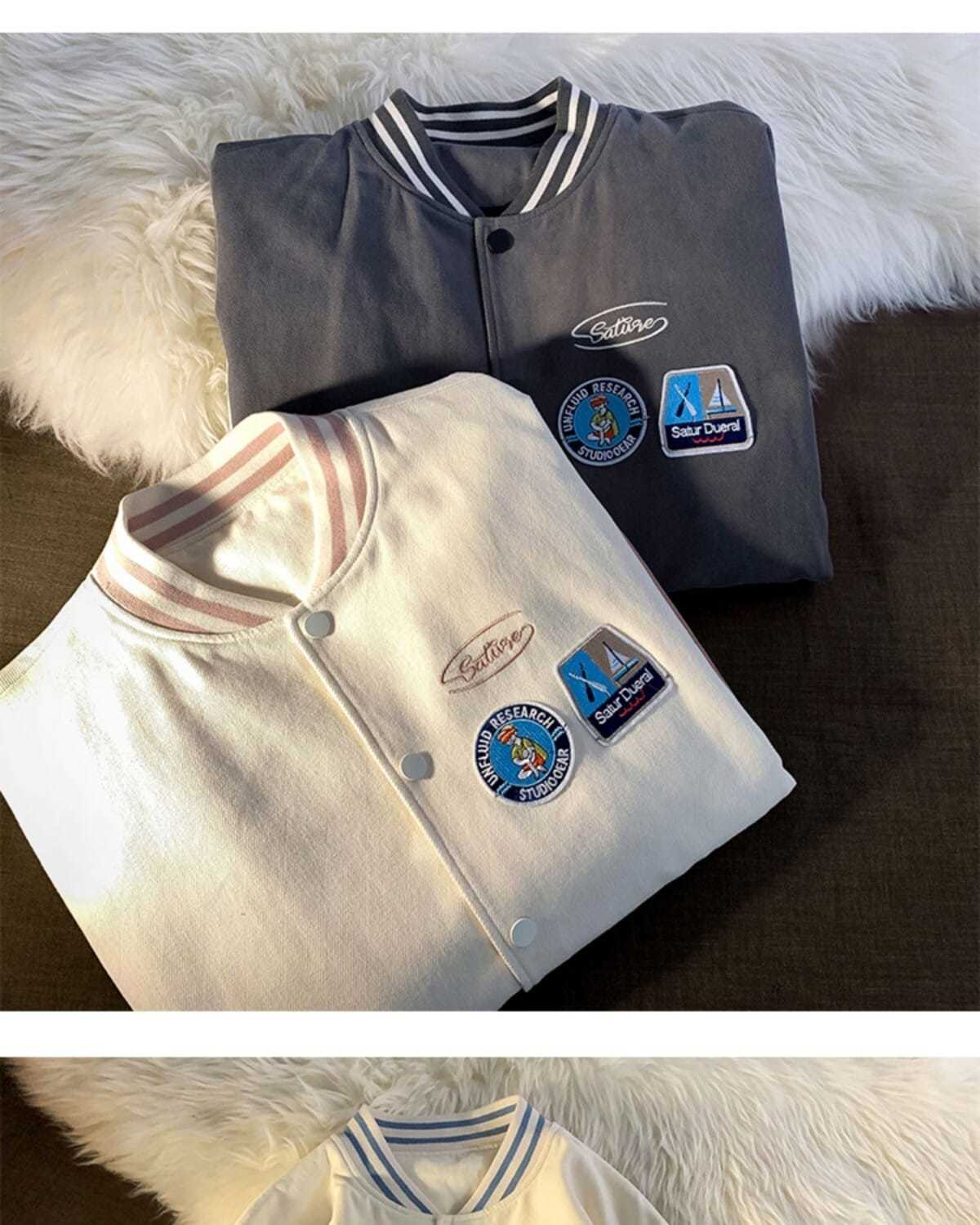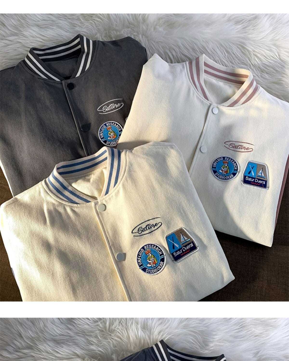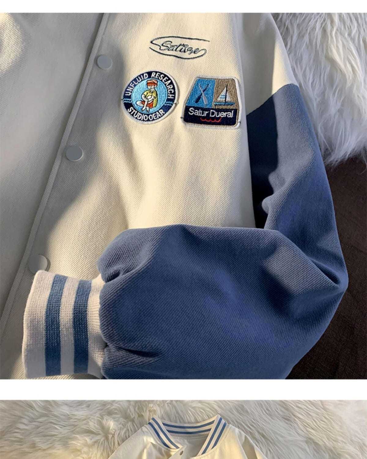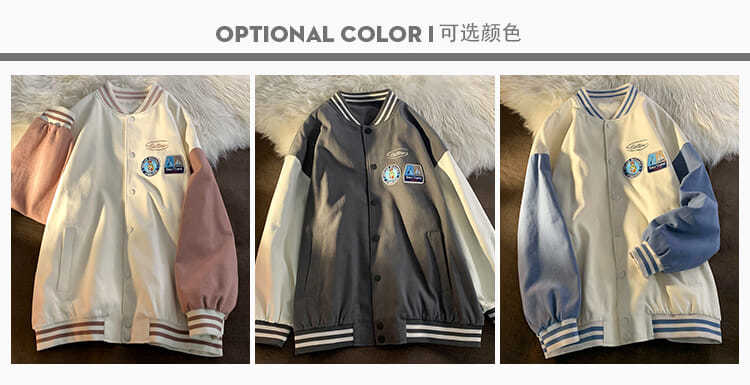 棒球服女春秋vintage运动宽松高街软奶蓝外套ins潮2022新款班服男
