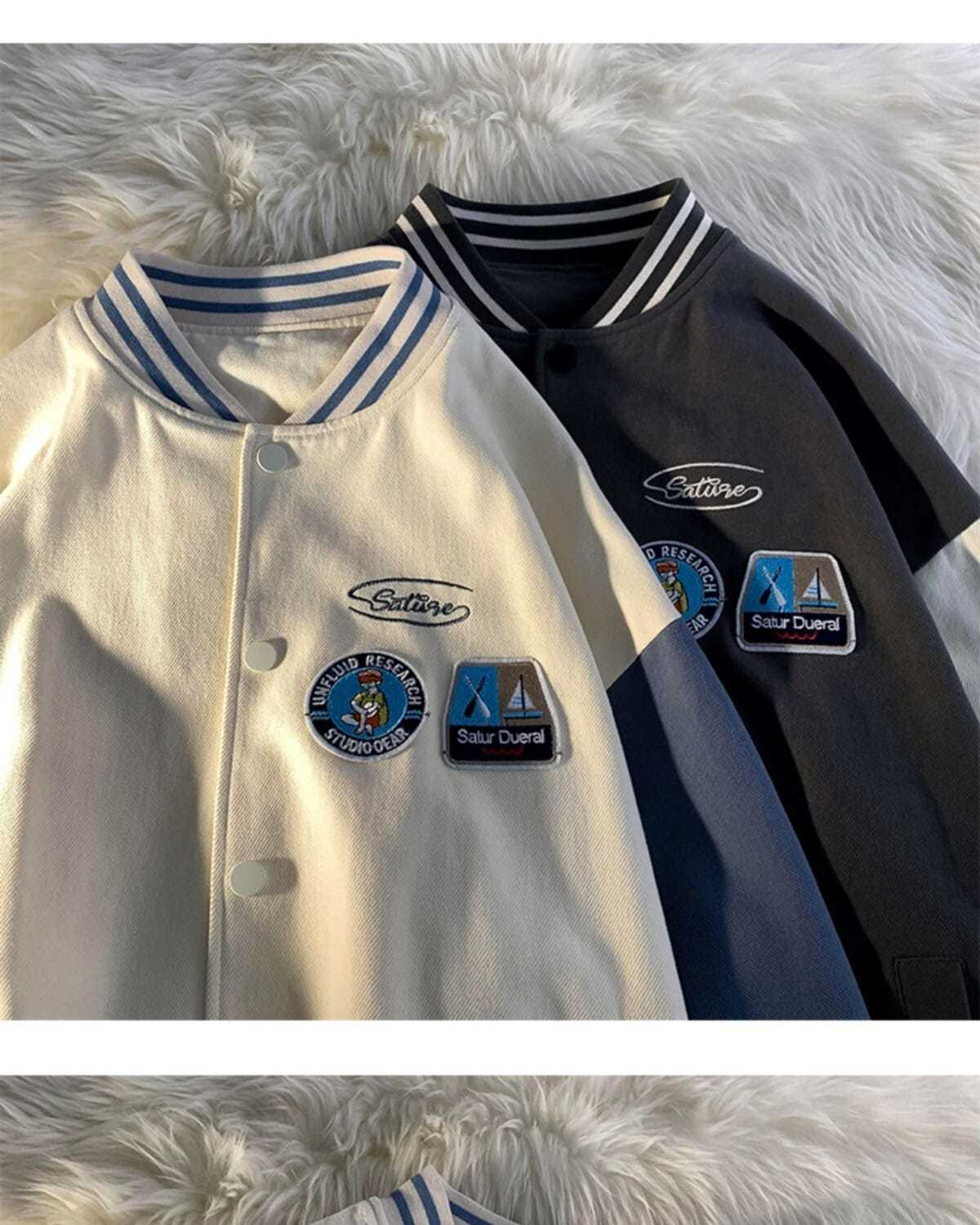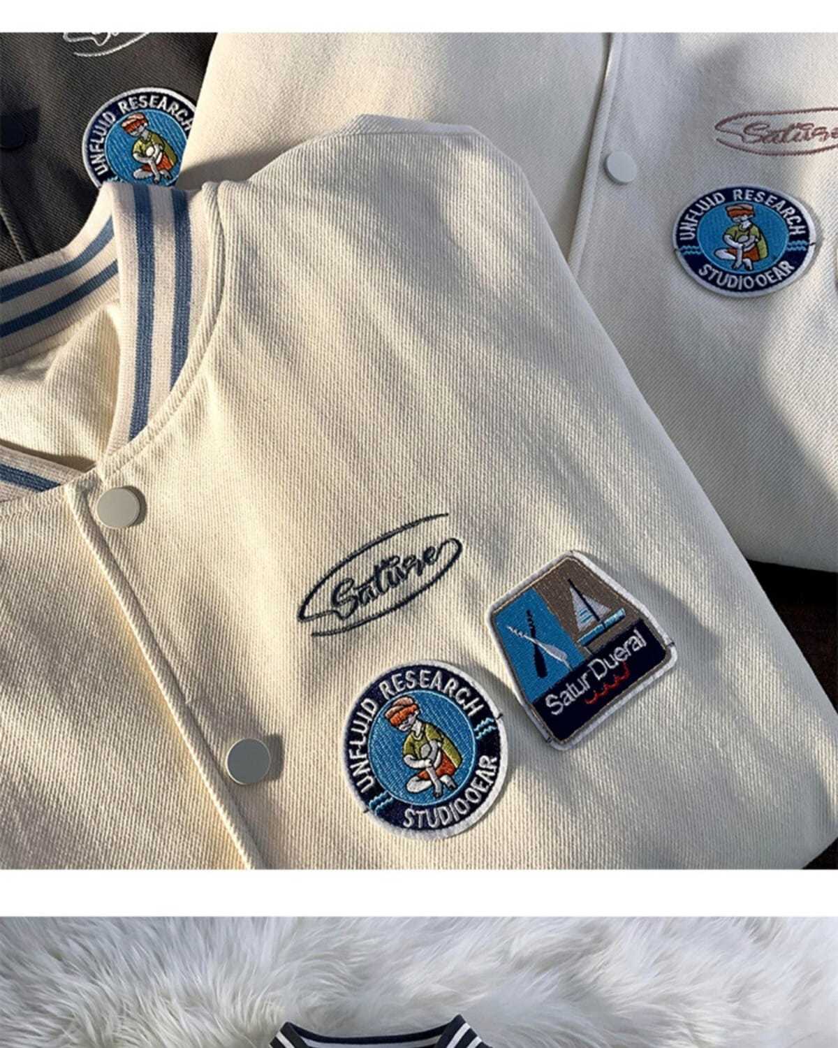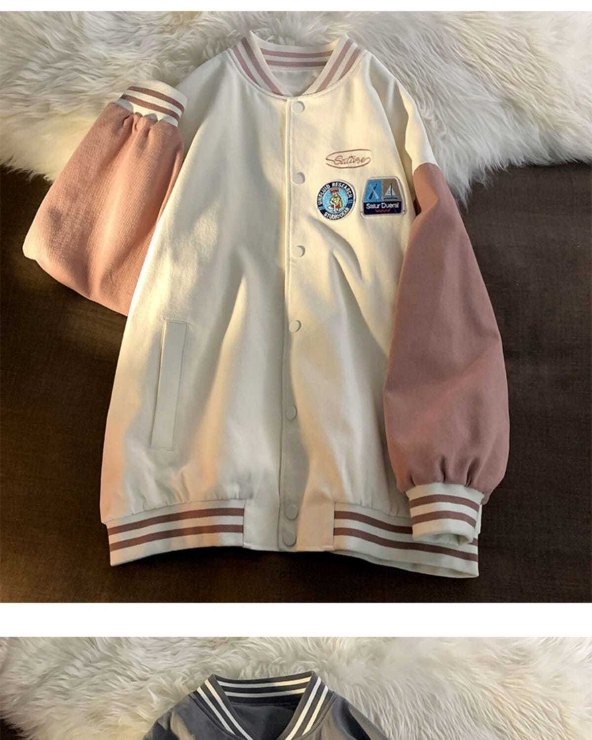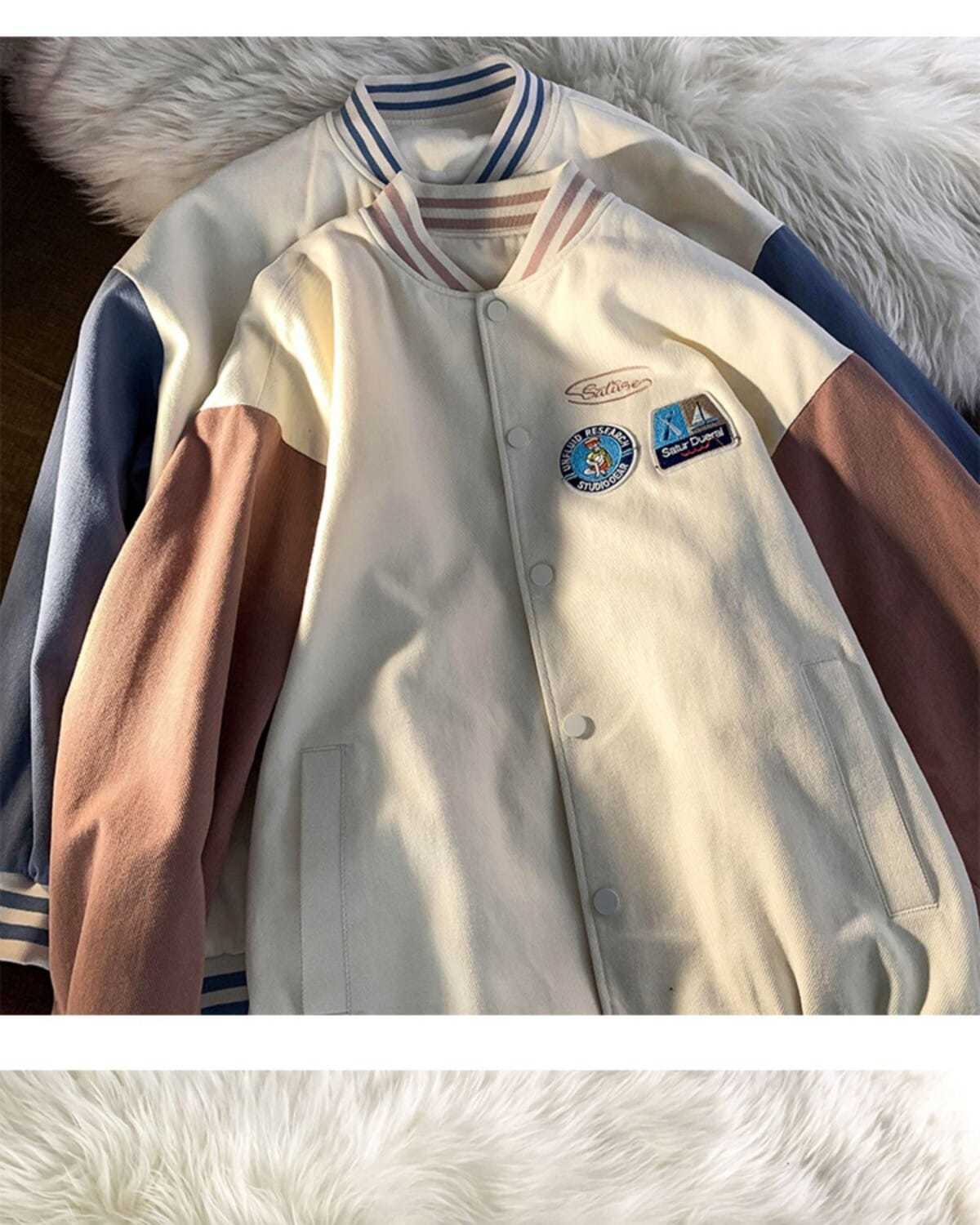棒球服女春秋vintage运动宽松高街软奶蓝外套ins潮2022新款班服男