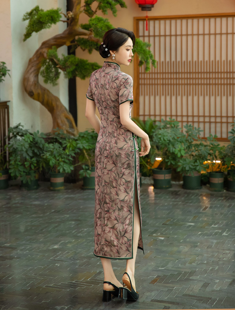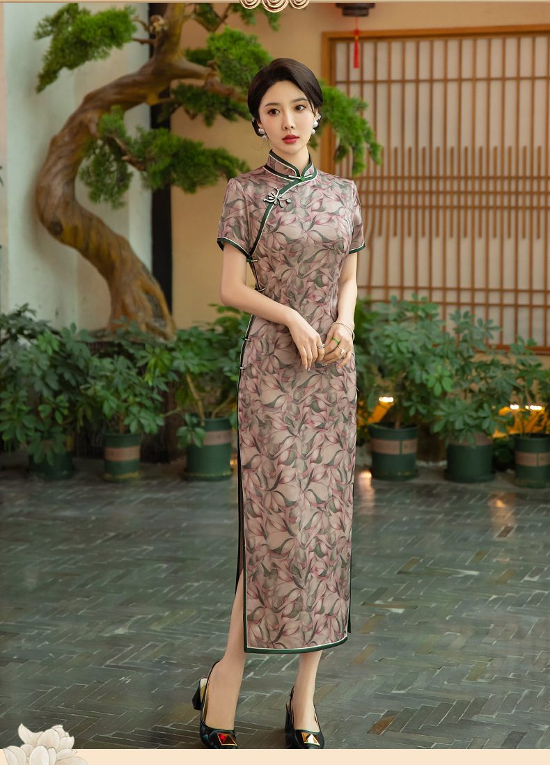 STF-3139新款春夏季女士长款修身真丝旗袍中长款日常服C3139