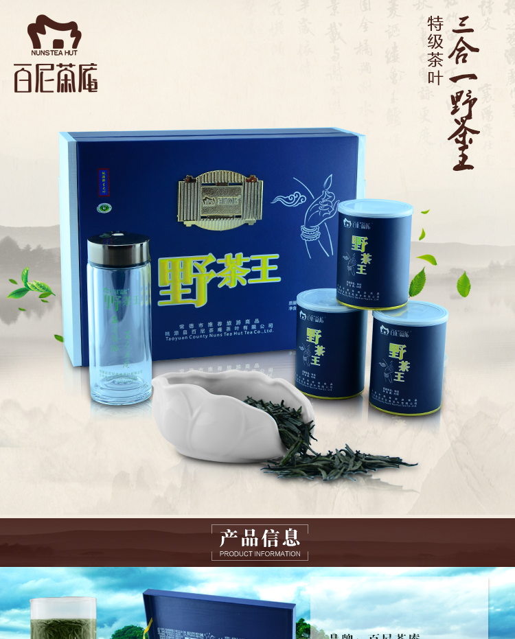 百尼茶庵 桃源野茶王 绿茶 三合一 礼品茶 150g